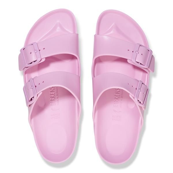 Roze rubberen slipper van het merk Birkenstock.