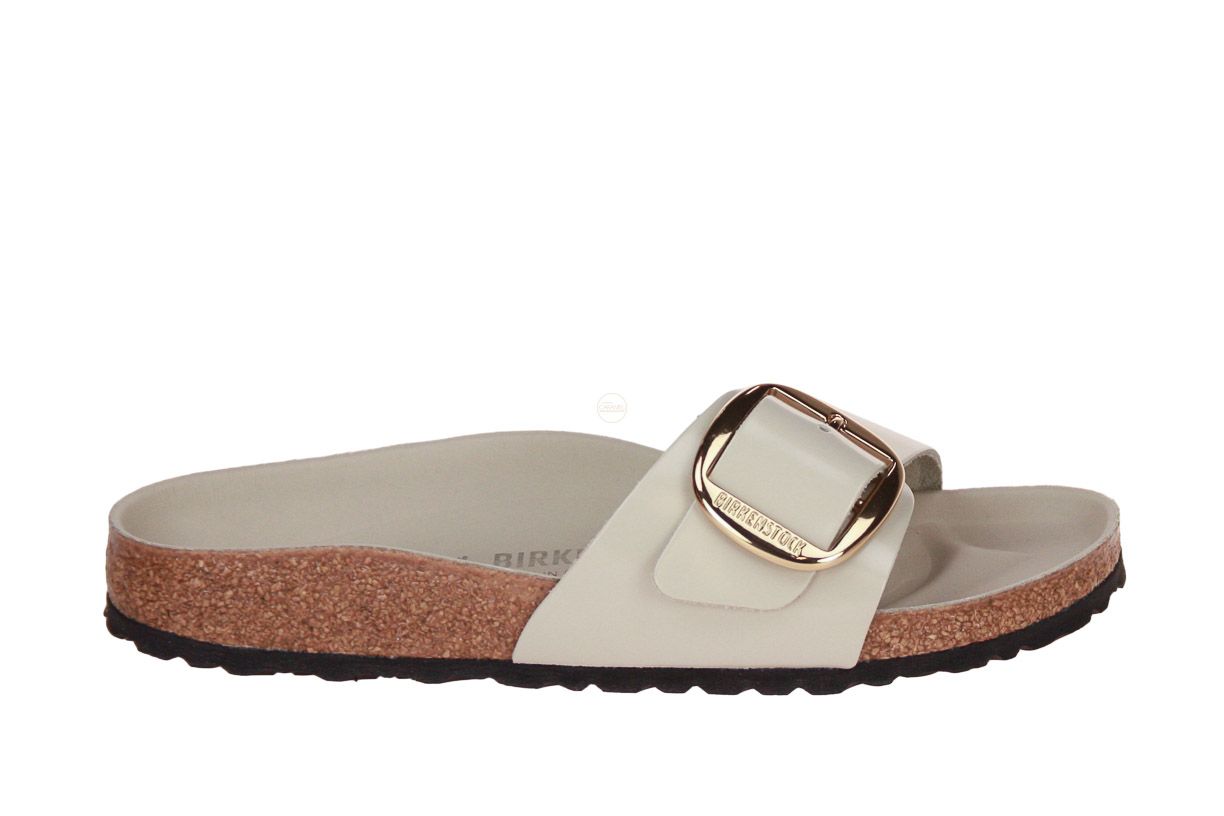 Madrid Big Buckle Natural Leather Patent High-Shine Oyster