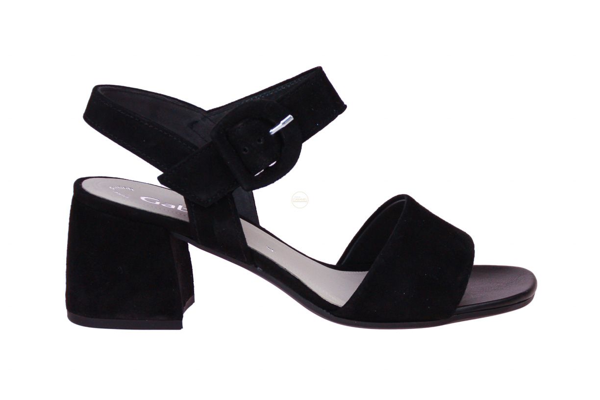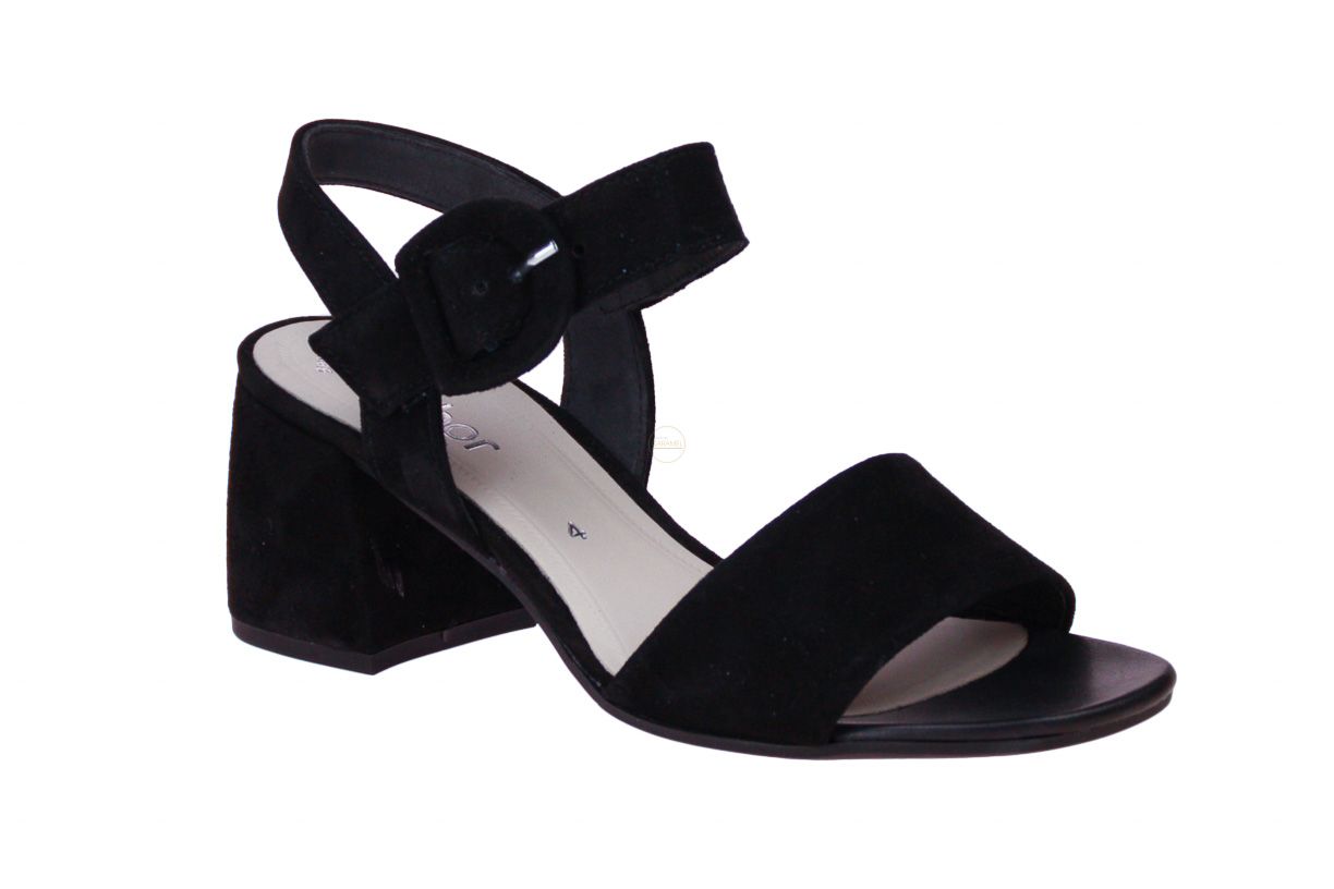 Zwart suède damessandaal van het merk Gabor.