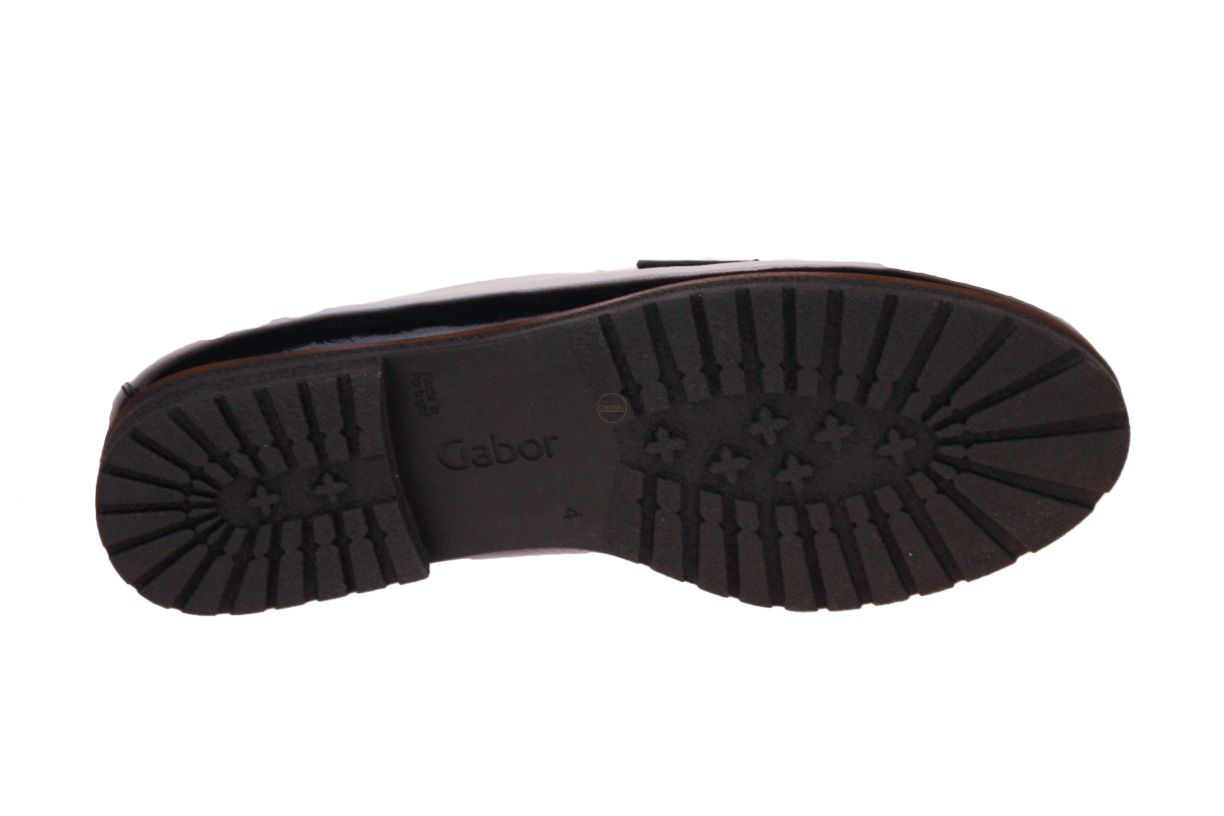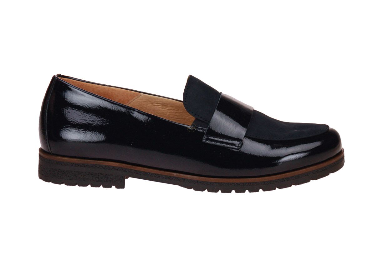 Blauw suède damesschoen met laklederen accenten van het merk Gabor.