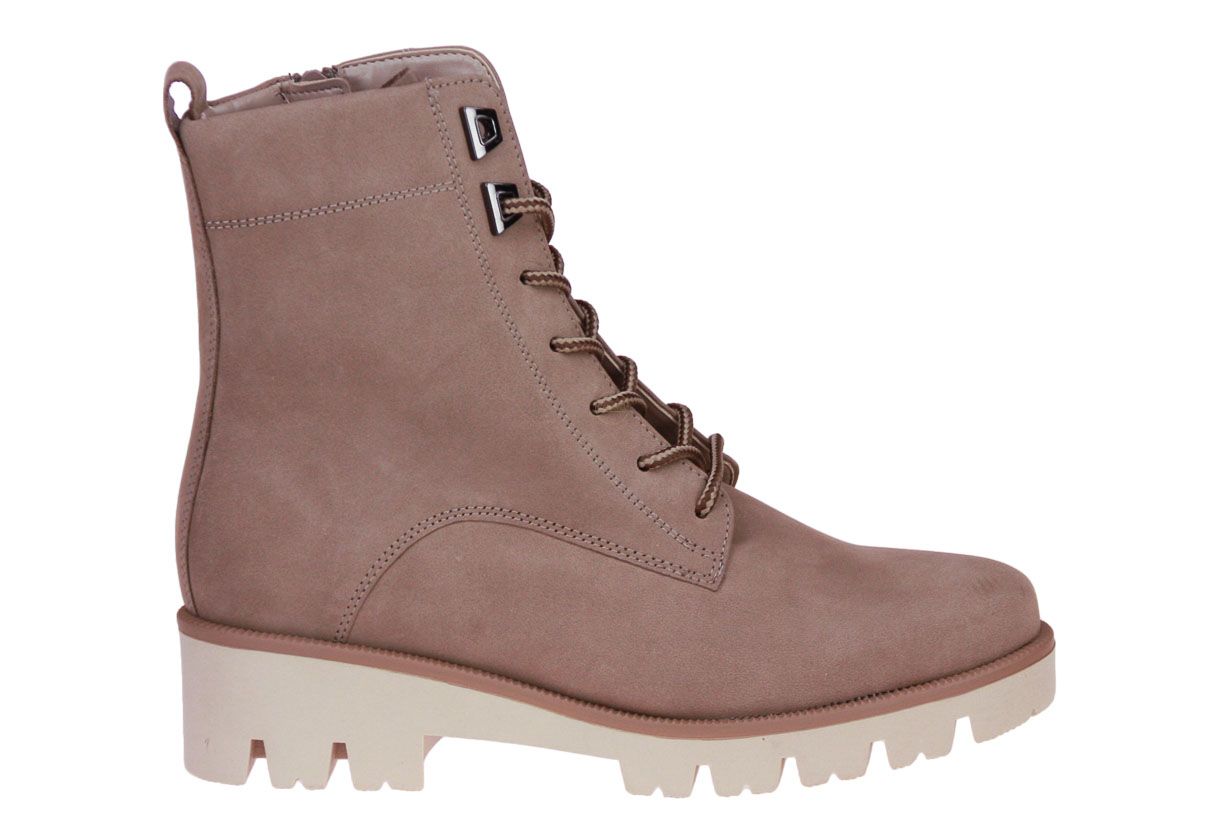 Camel nubuck korte dameslaars van het merk Gabor. Dit model heeft een h-leest, ideaal voor bredere voeten.