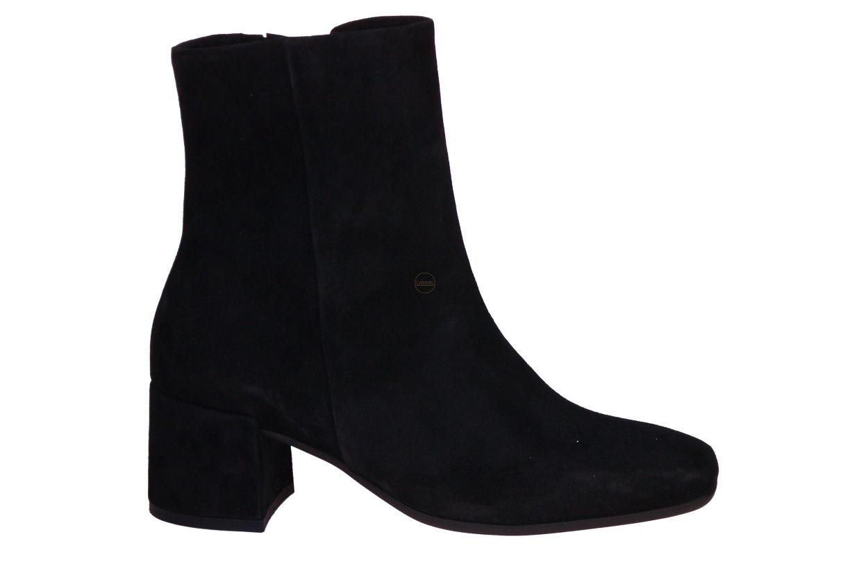 Zwart suède korte dameslaars van het merk Gabor. Dit model heeft een G-leest, ideaal voor bredere voeten.
