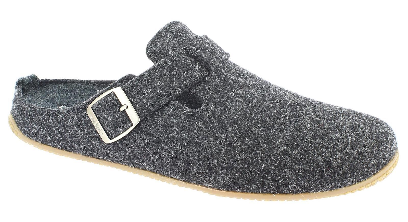 Grijs wollen pantoffel van het merk Kitzbuhel. De binnenzool is uitneembaar, ideaal voor steunzolen.