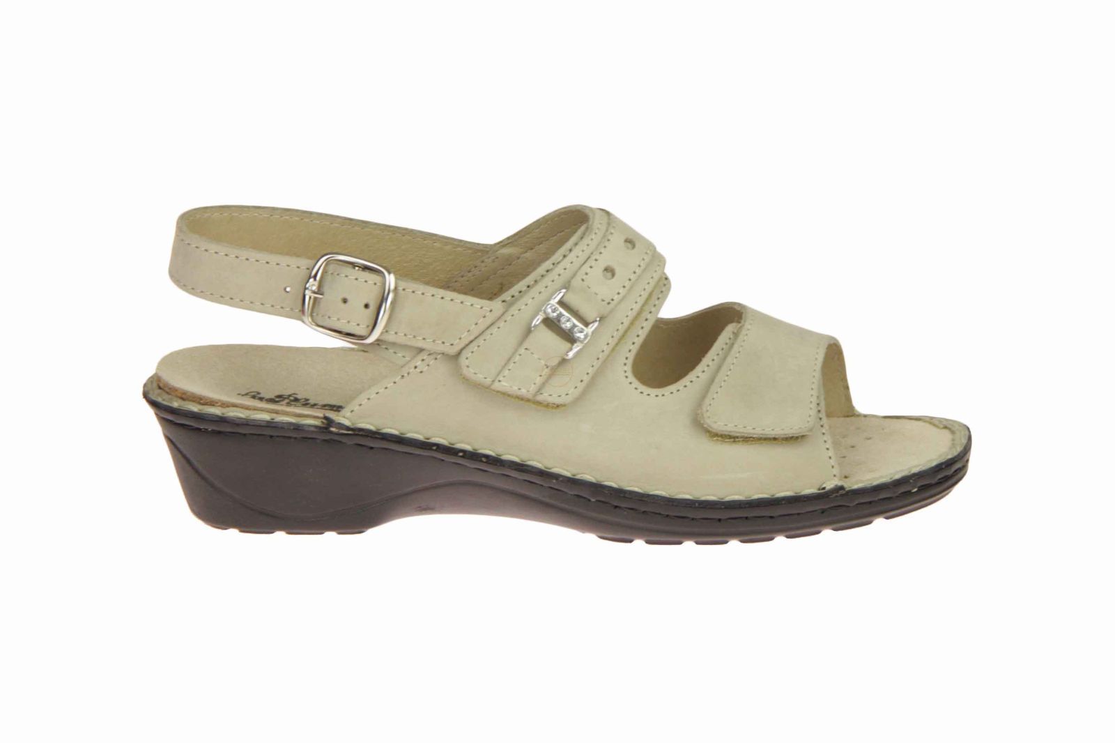 Ideale sandaal voor mensen met steunzolen, de zool is uitneembaar. Hij blijft perfect zitten rond de voet dankzij de dubbele velcro sluiting en het vertstelbare riempje achteraan.
