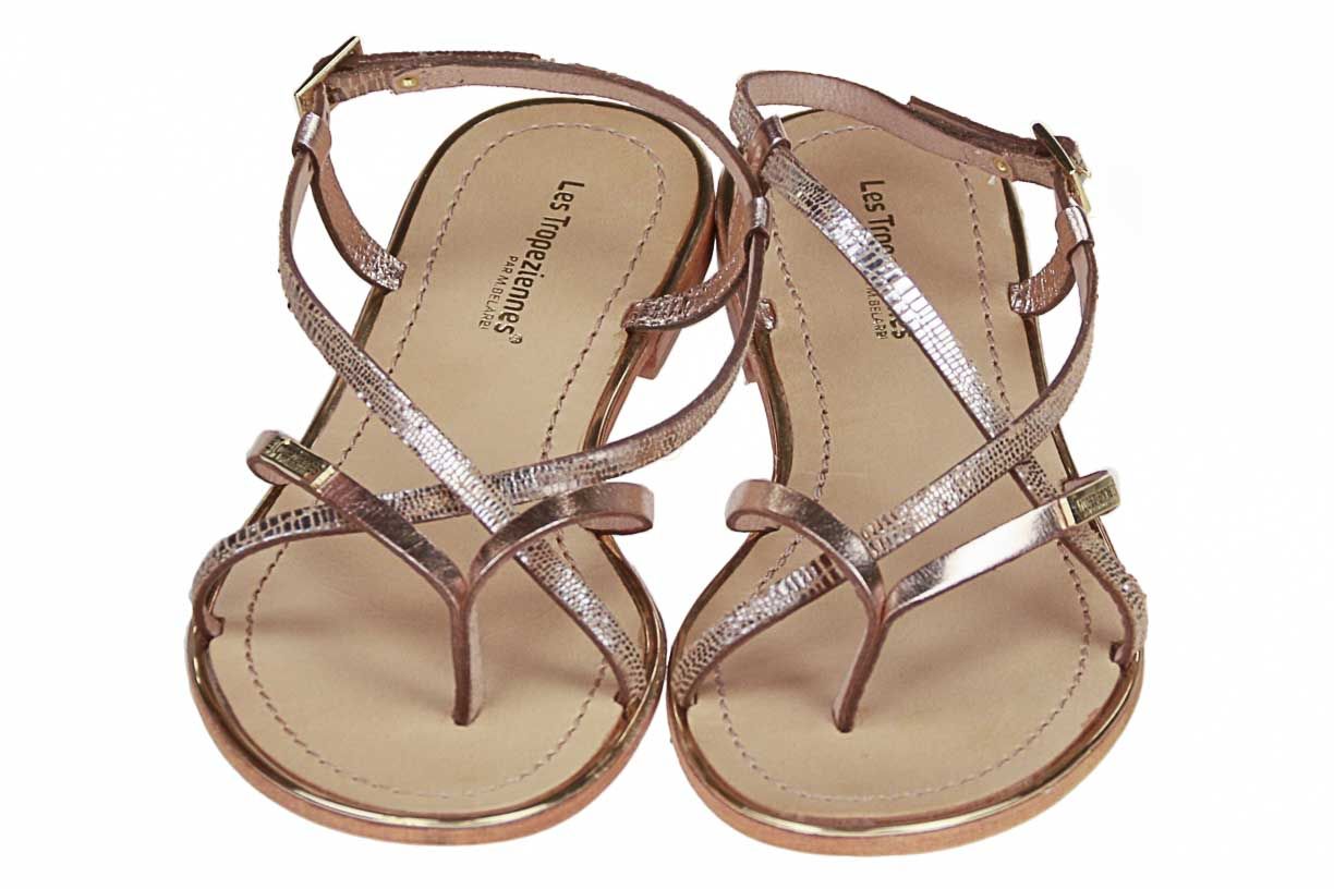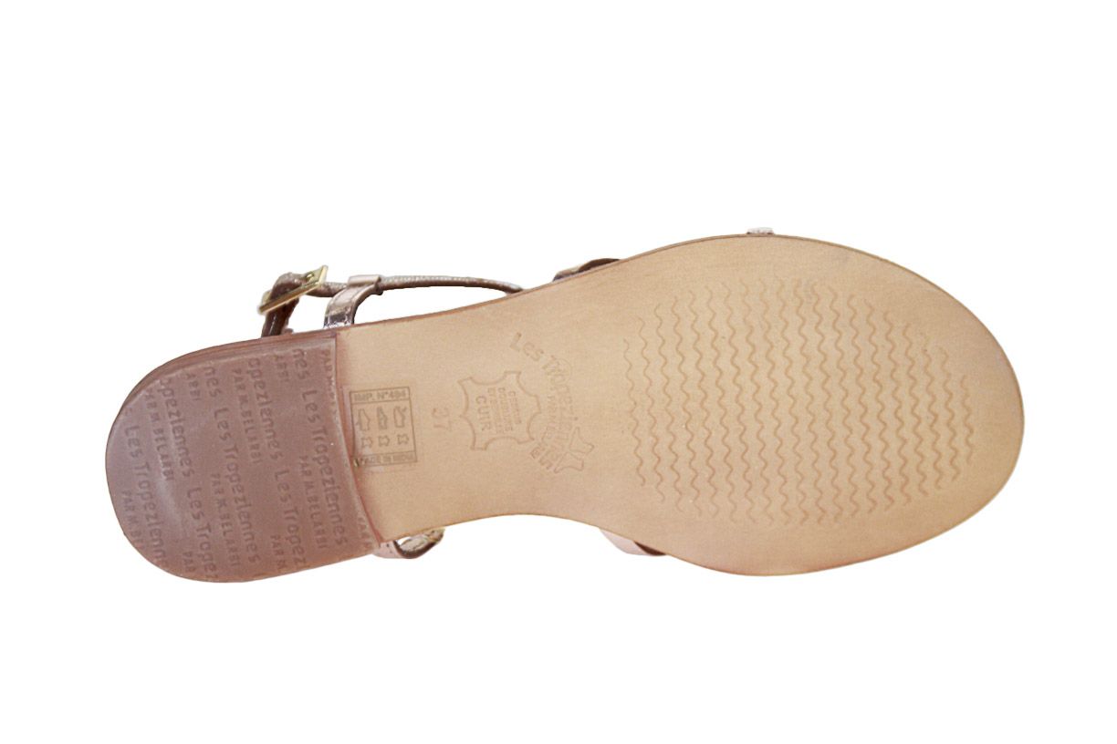 Deze goud lederen damessandaal is van het merk Les Tropeziennes.