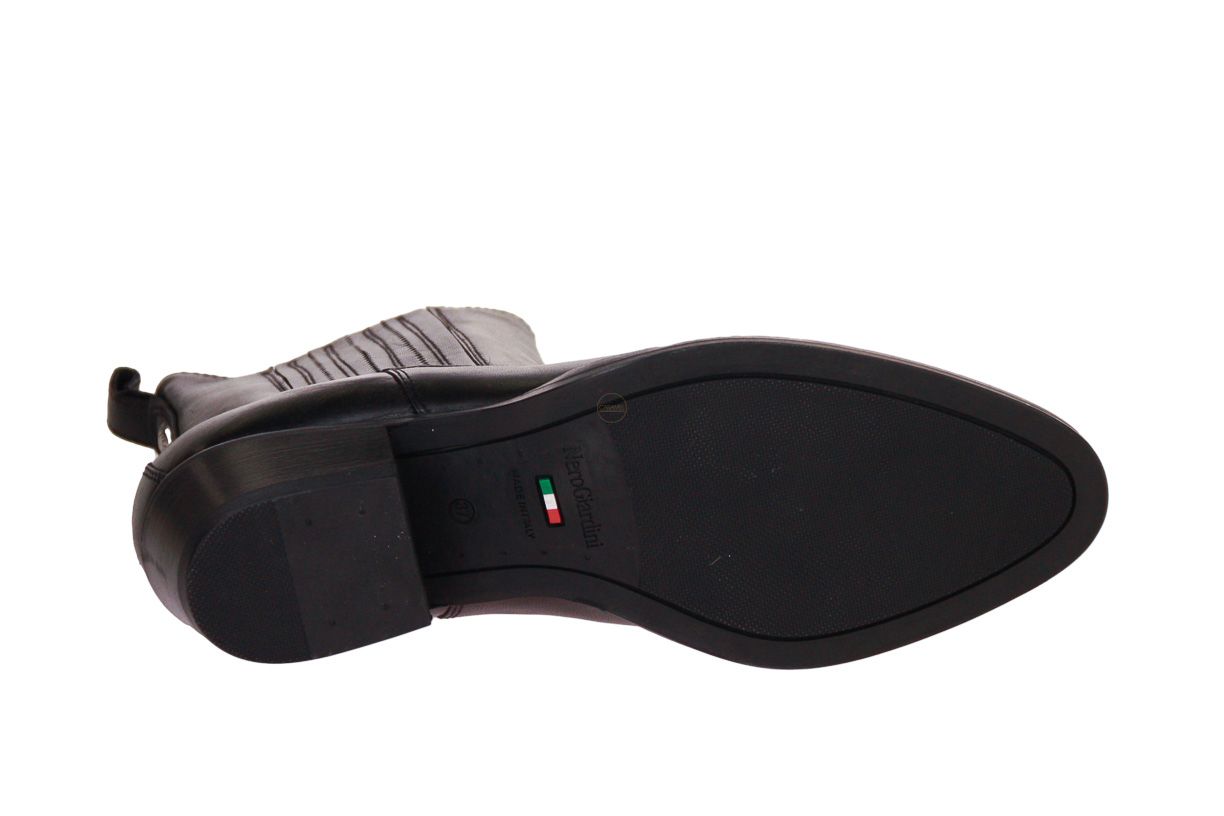 Zwart lederen korte dameslaars van het merk Nero Giardini.