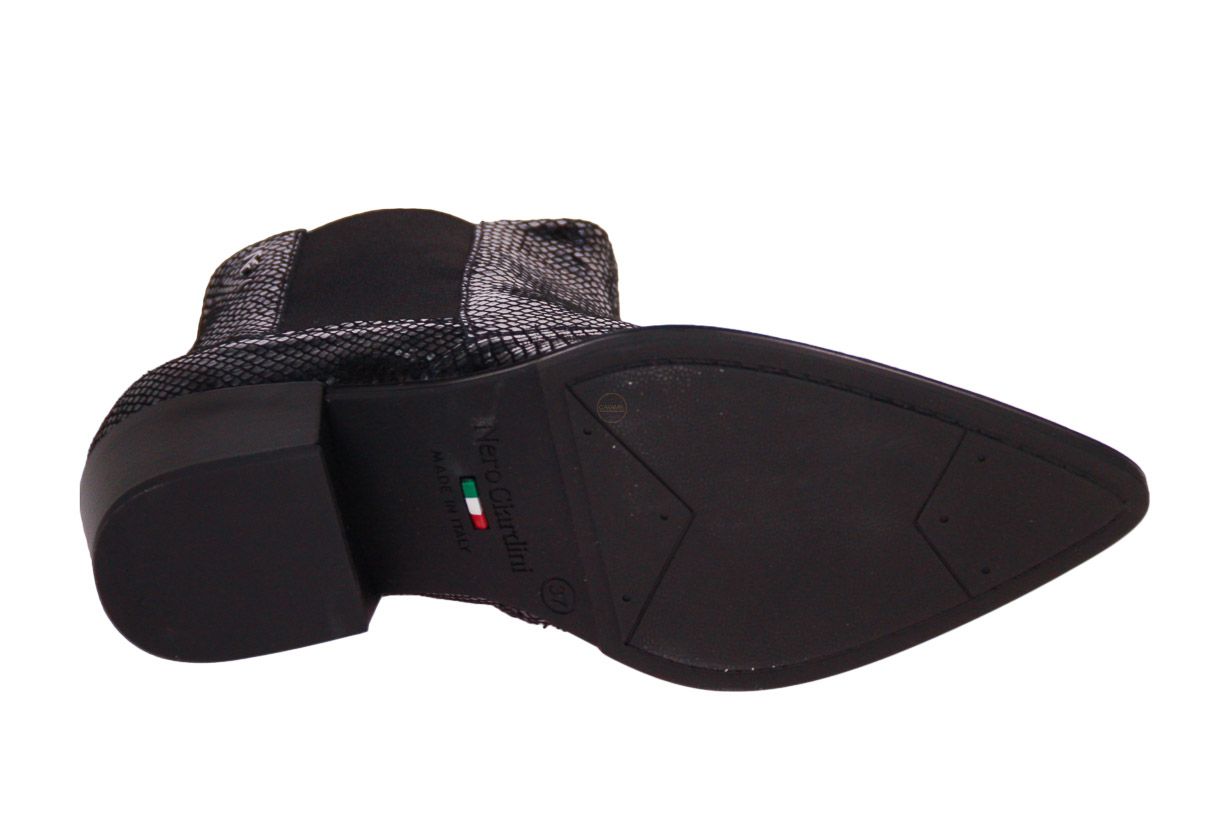 Deze kort metallic lederen dameslaars is van het merk Nero Giardini.
