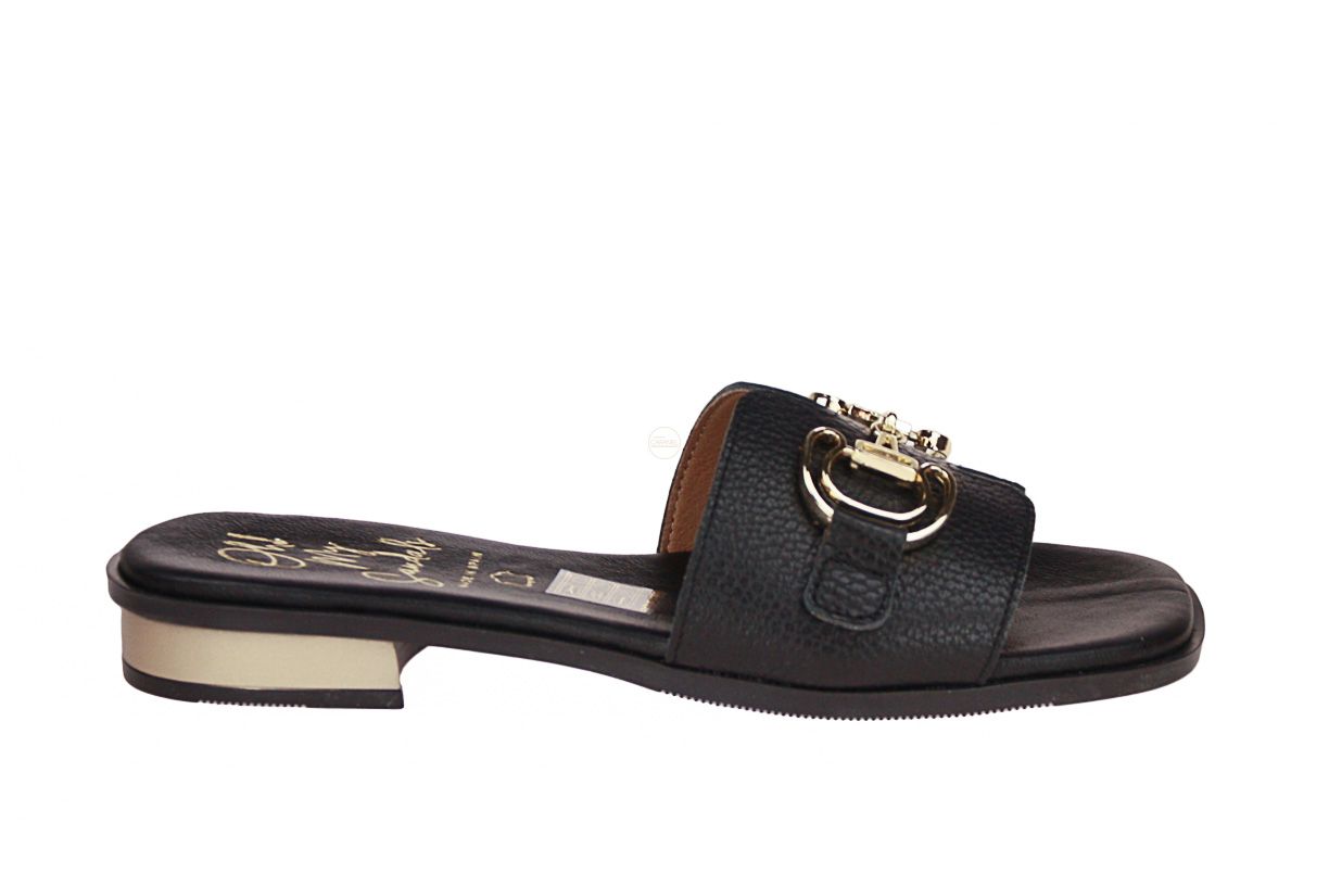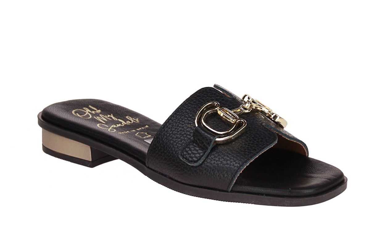 Deze zwart lederen damesslipper is van het merk Oh My Sandals.