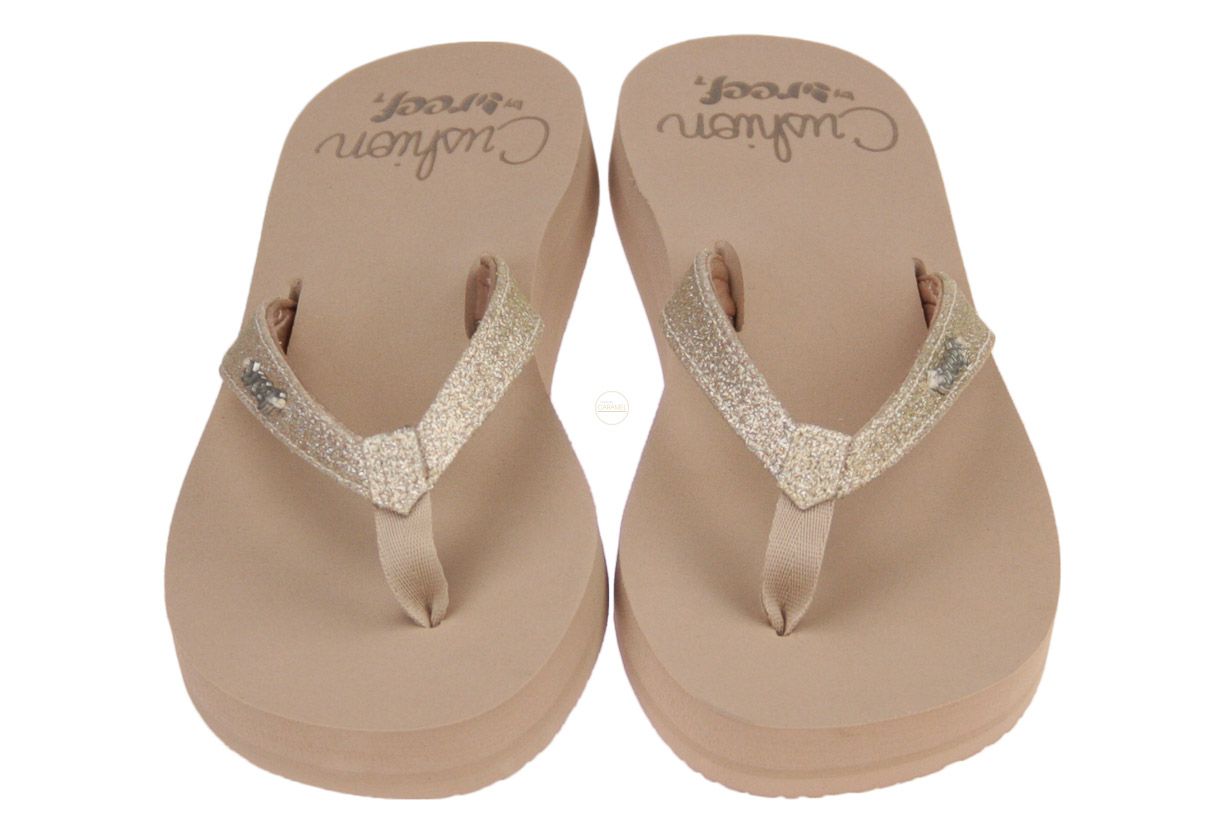 Beige rubberen damesslipper van het merk Reef.