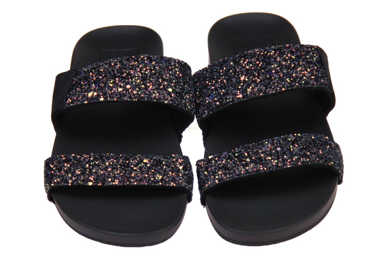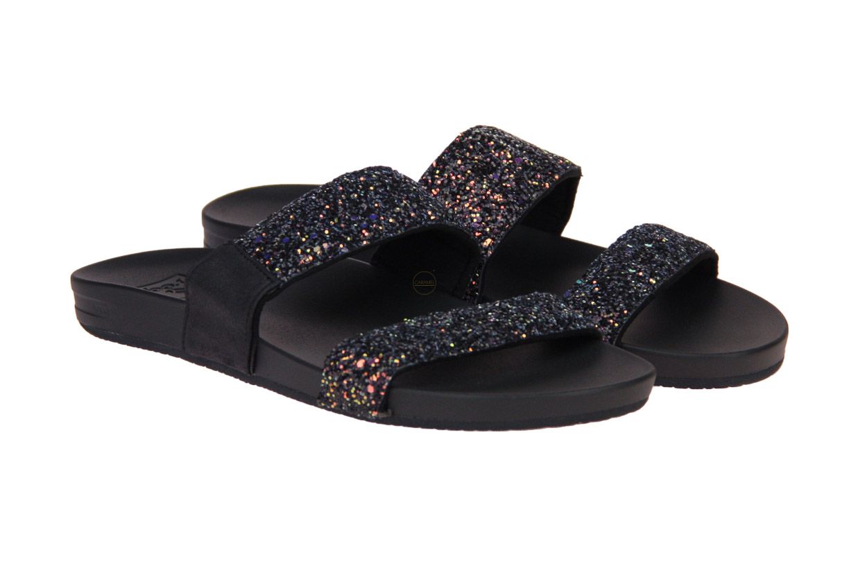 Zwart rubberen damesslipper van het merk Reef.