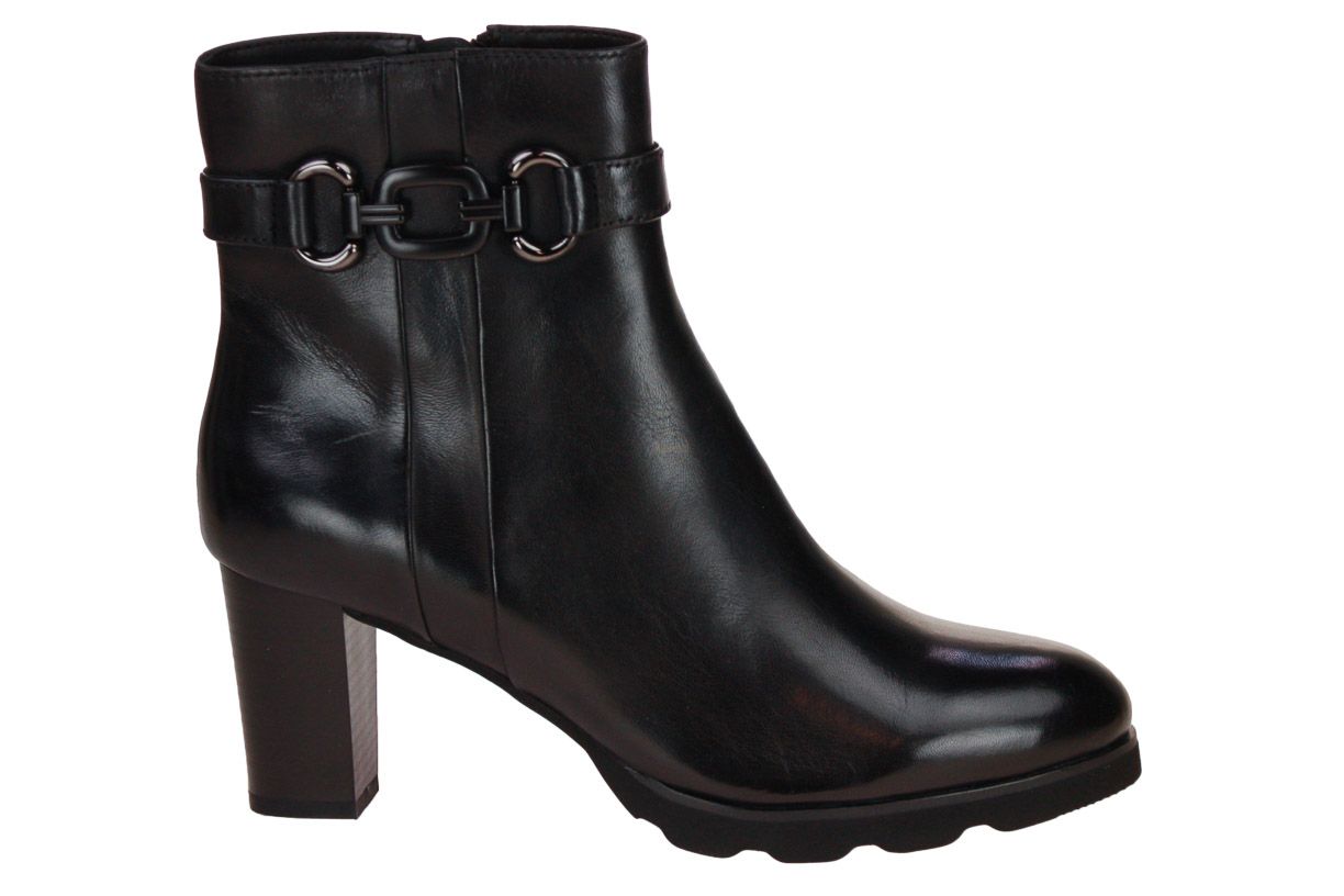 Deze zwart kort lederen dameslaars is van het merk Regarde Le Ciel.