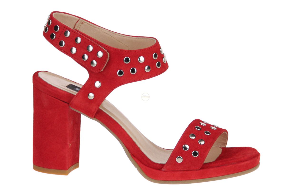 Rood suede damessandaal van het merk Roberto d'Angelo. Bestel online - gratis levering