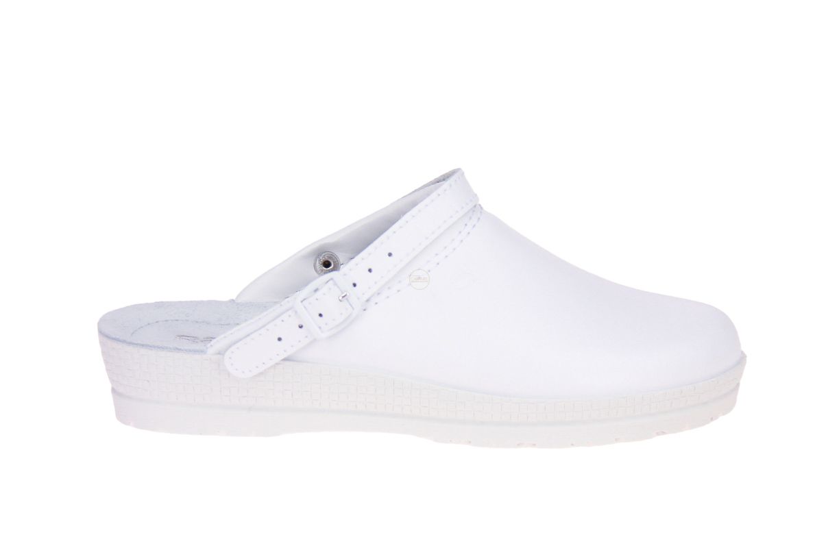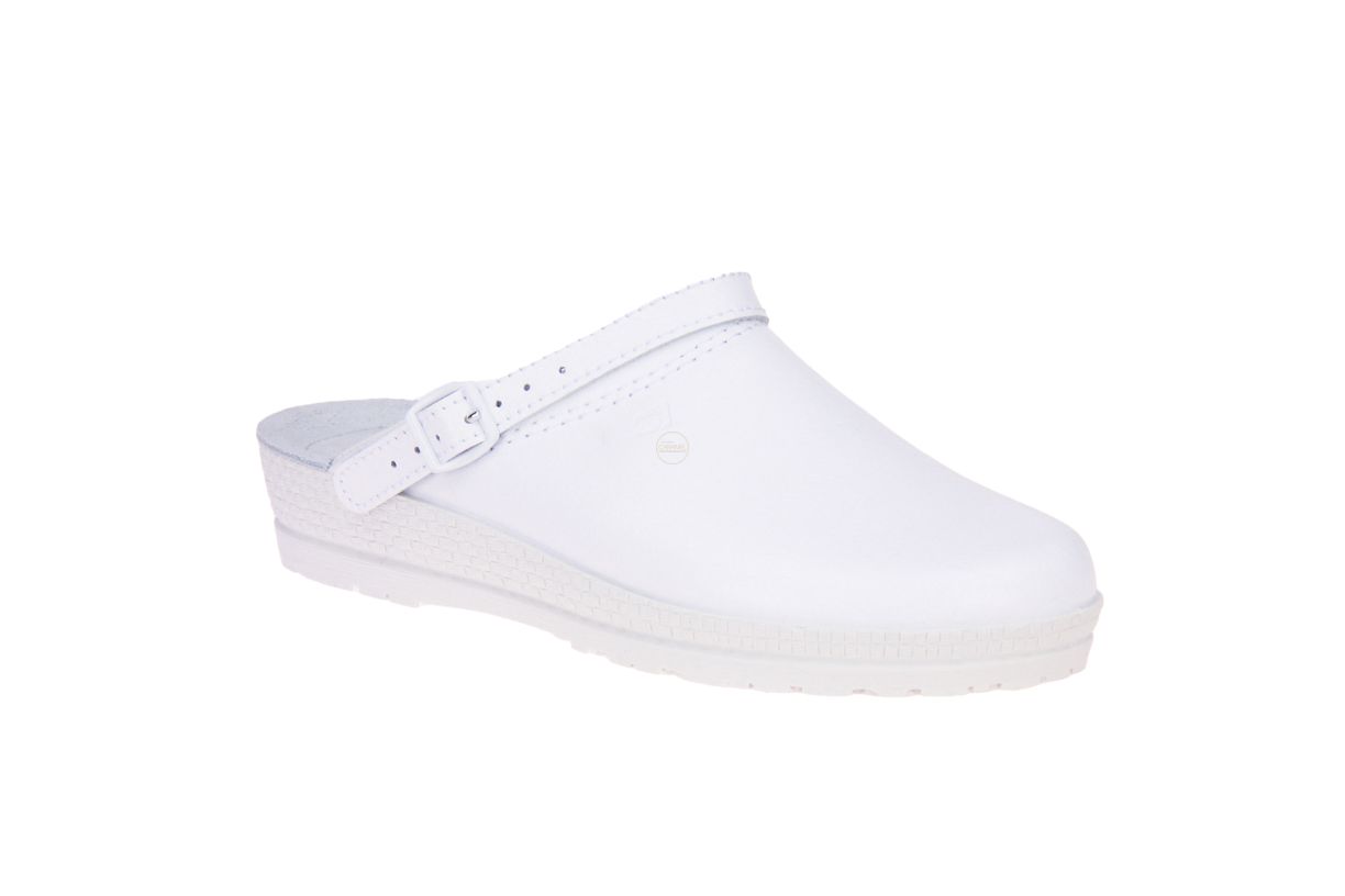 Wit lederen damespantoffel van het merk Rohde.