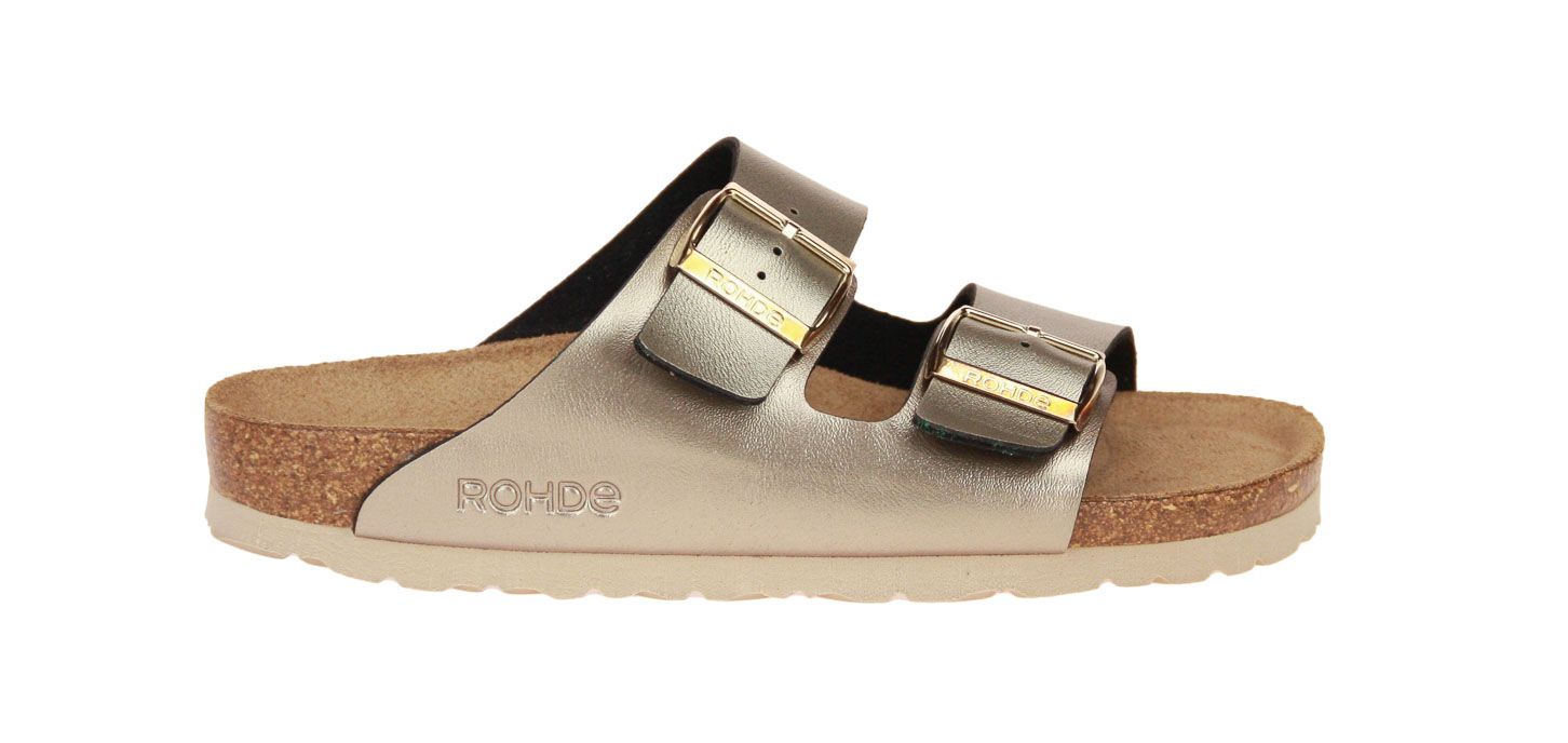 Brons metallic lederen damesslipper van het merk Rohde.