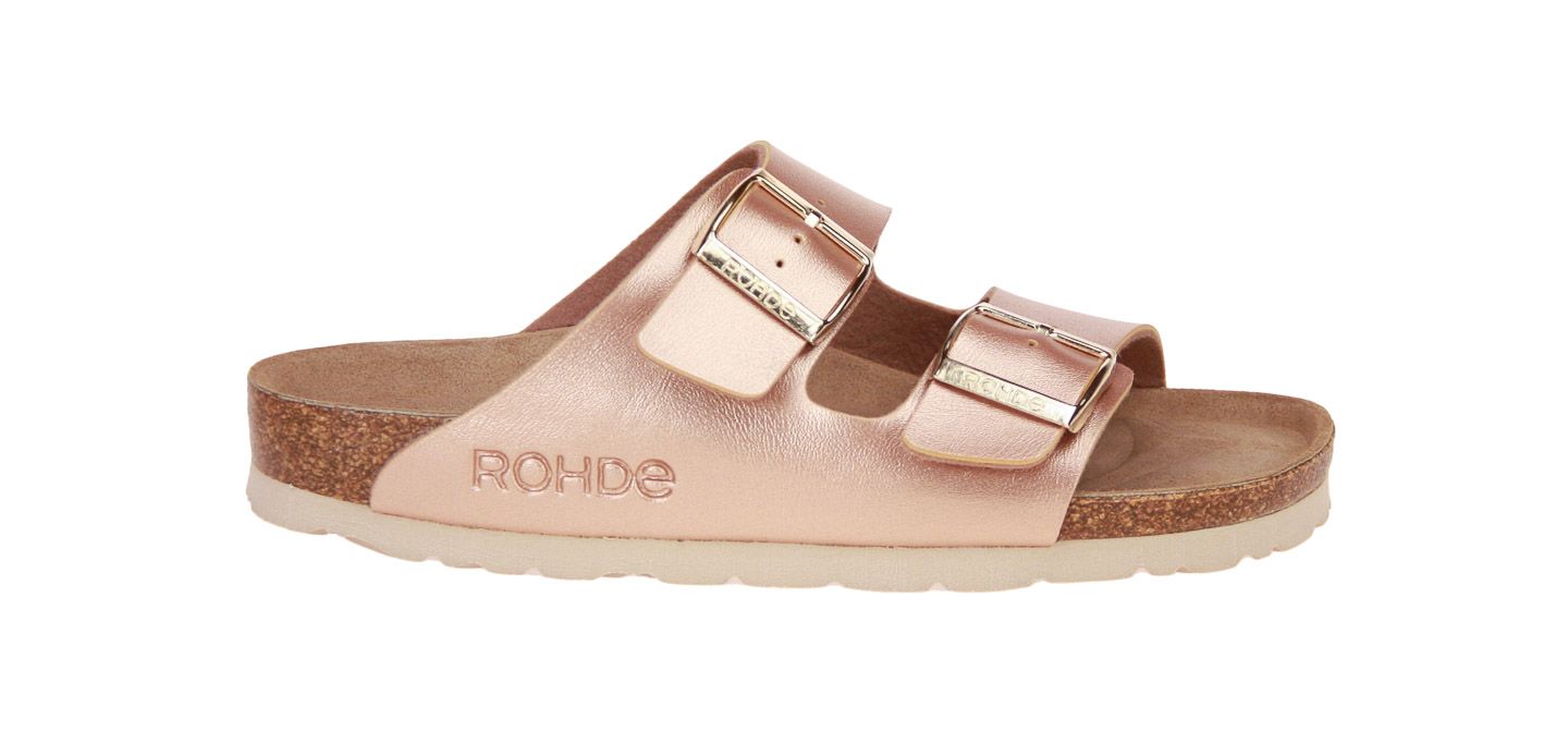 Roze metallic lederen damesslipper van het merk Rohde.