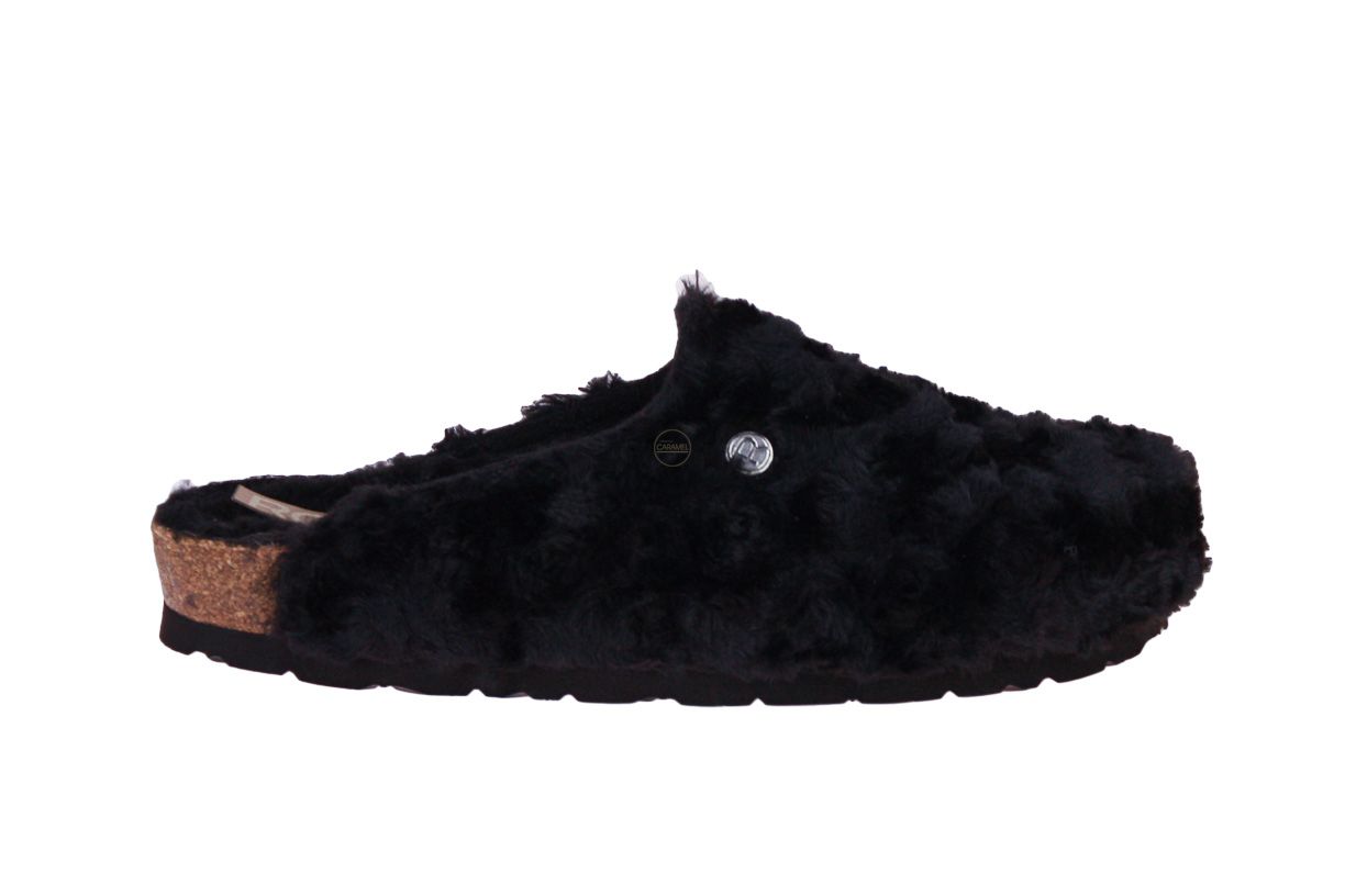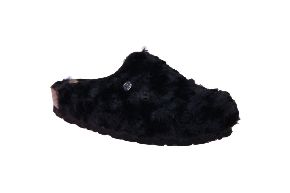 Zwarte damespantoffel met pels van het merk Rohde.