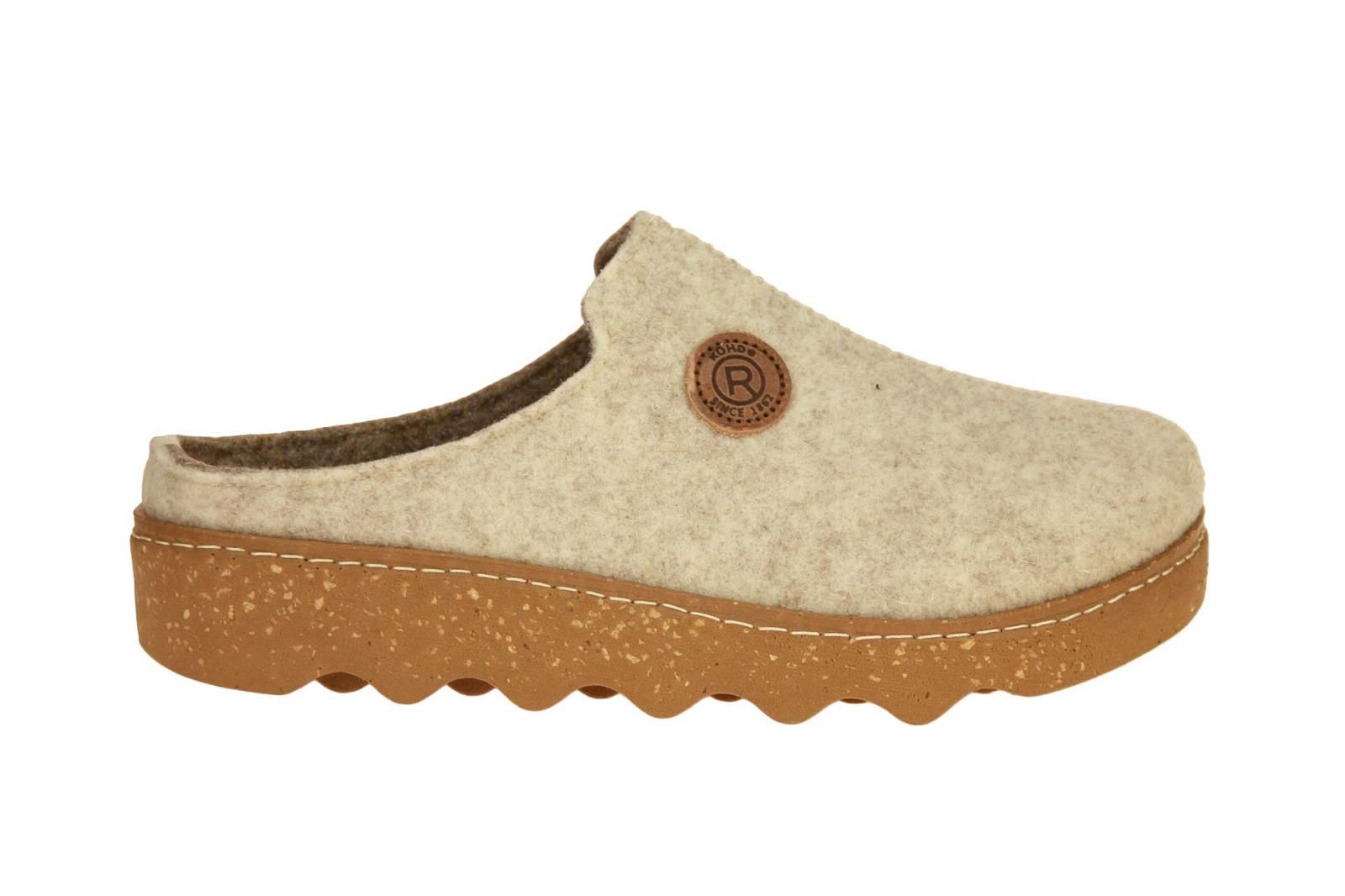Beige wollen damespantoffel van het merk Rohde. De binnenzool is uitneembaar, ideaal voor steunzolen.