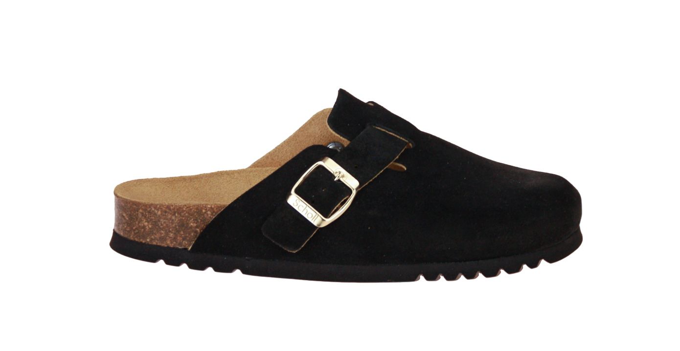 Zwart suède damesslipper van het merk Scholl.