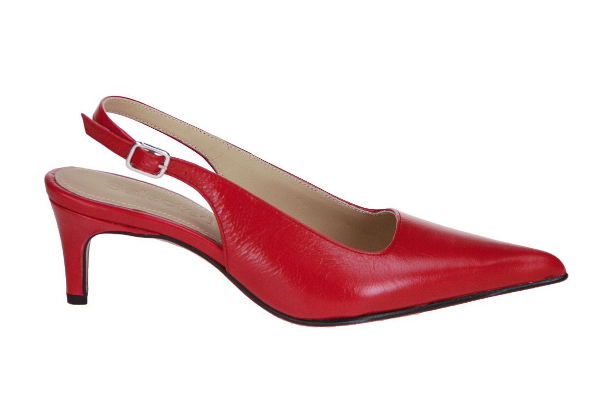 Deze rode lederen damesschoen is van het merk Selected Femme.