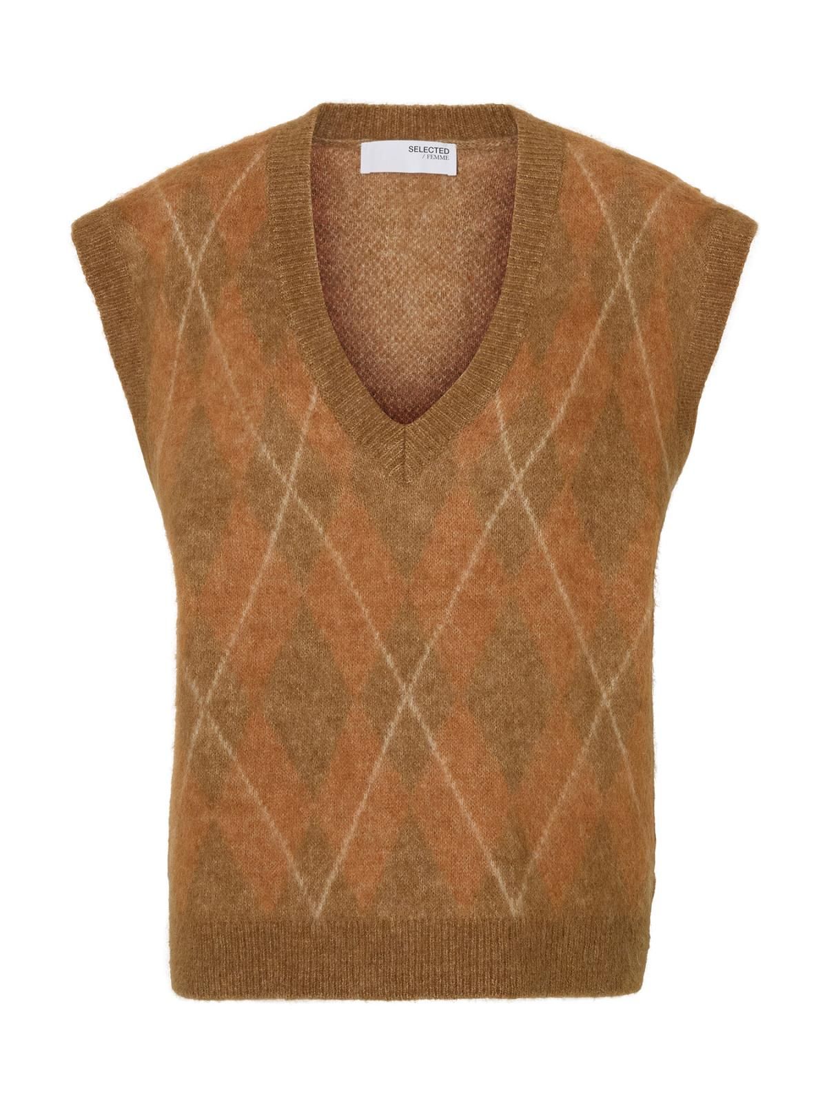 Selected Femme Lulu Brushed Argyle Knit Vest Golden Brown  (16099575 GOLDEN BROWN) - MerkenOutlet
