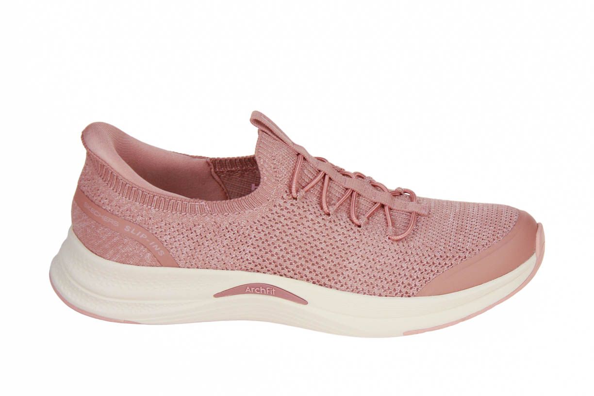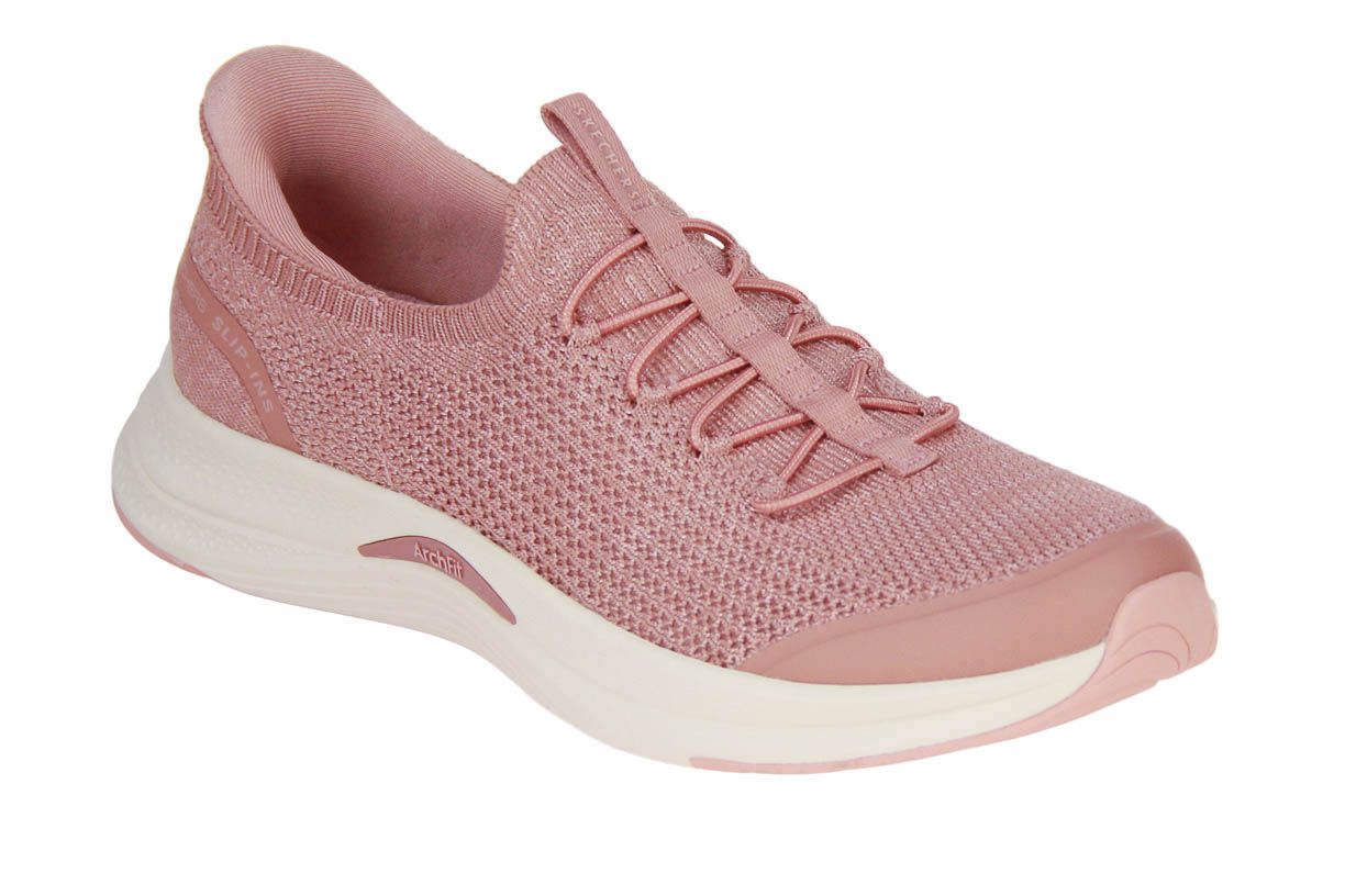 Deze roze textielen damesschoen is van het merk Skechers. Deze schoen is wasmachine bestendig.