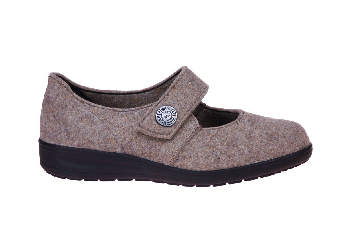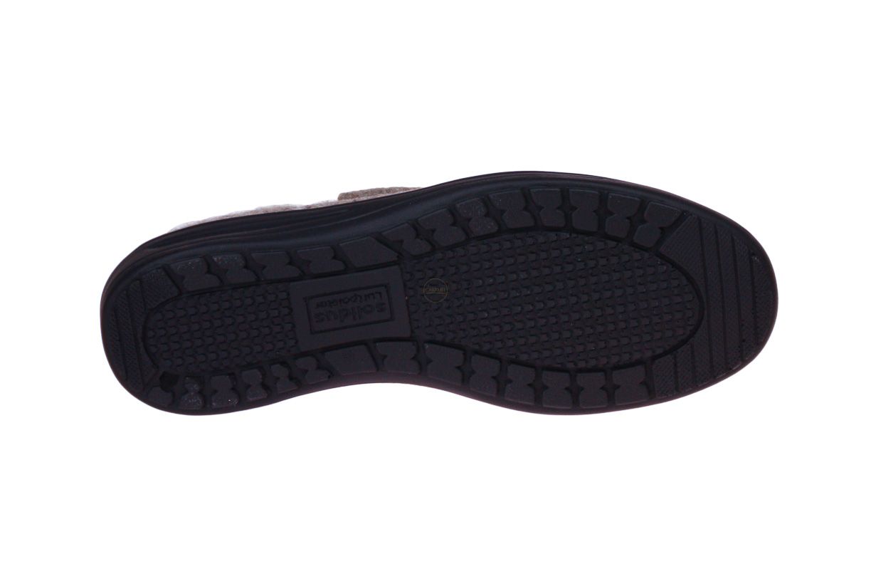 Beige wol gesloten damespantoffel van het merk Solidus. De binnenzool is uitneembaar, ideaal voor steunzolen.