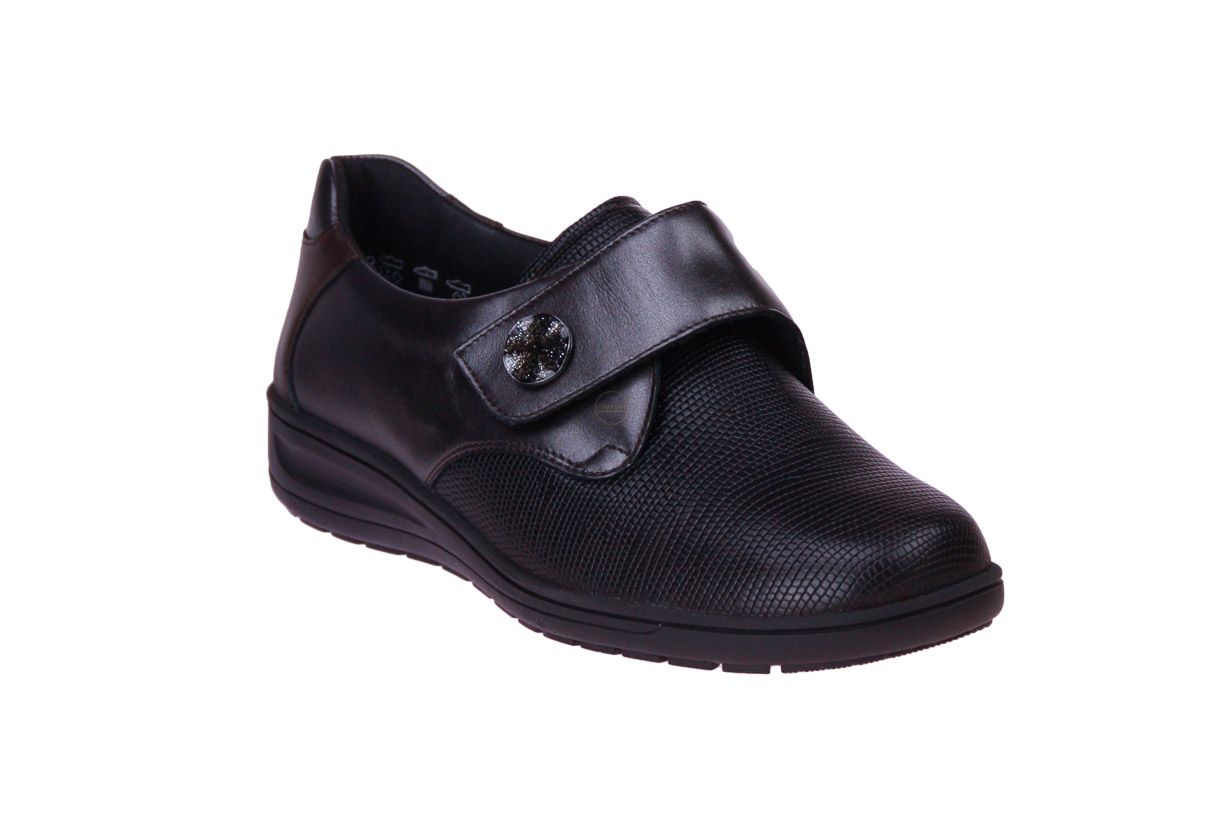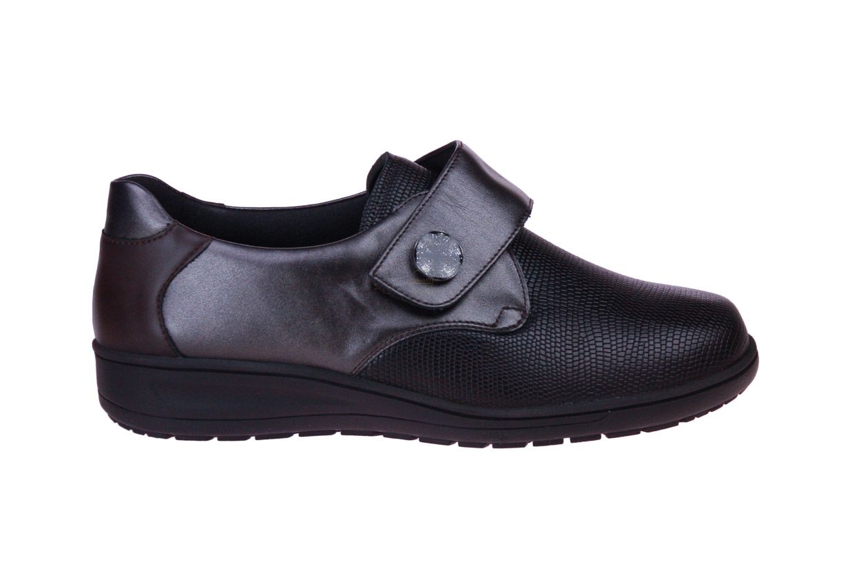 Grijs metallic lederen damesschoen met klittenband van het merk Solidus. De binnenzool is uitneembaar, ideaal voor steunzolen.