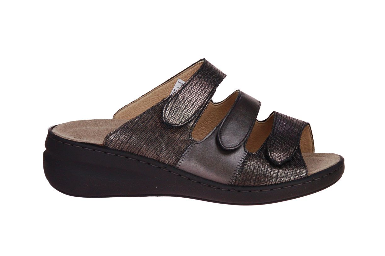 Brons lederen damesslipper van het merk Solidus. De binnenzool is uitneembaar, ideaal voor steunzolen.