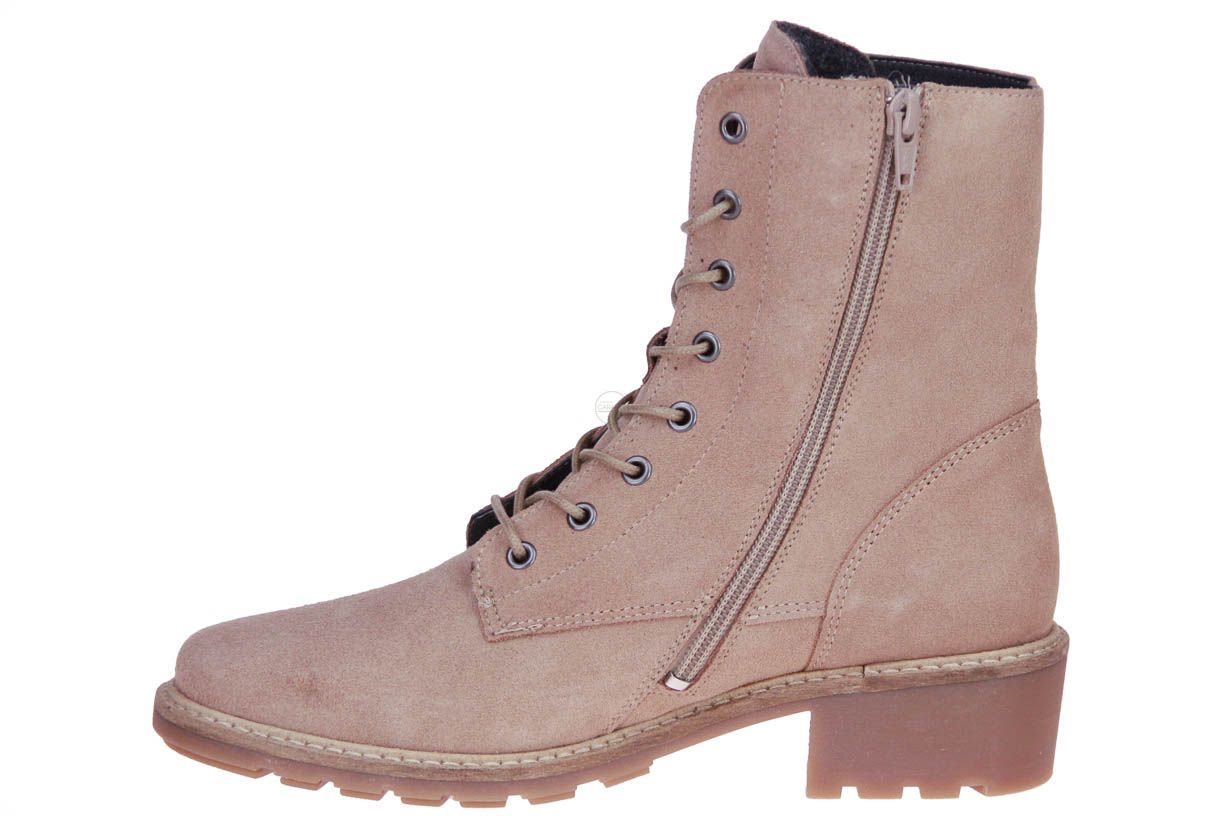 Roze suède korte dameslaars van het merk Solidus. De binnenzool is uitneembaar, ideaal voor steunzolen.