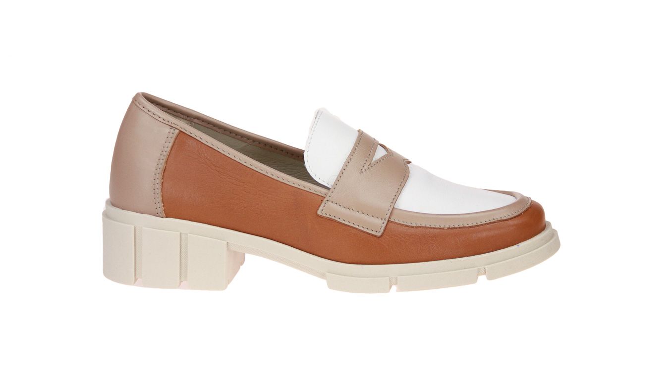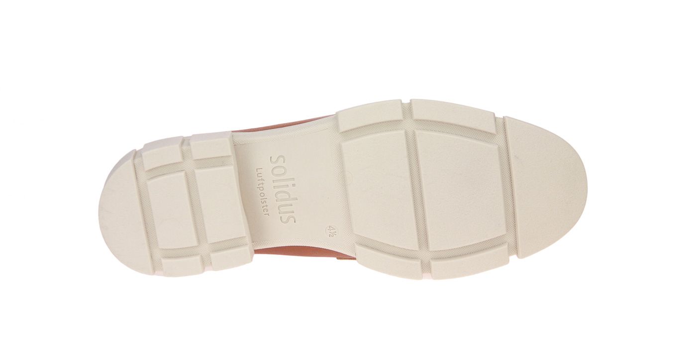 Wit lederen damesschoen met cognac accenten van het merk Solidus. De binnenzool is uitneembaar, ideaal voor steunzolen.