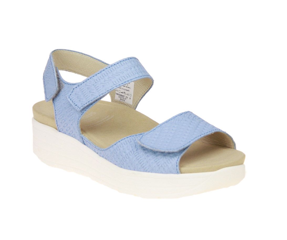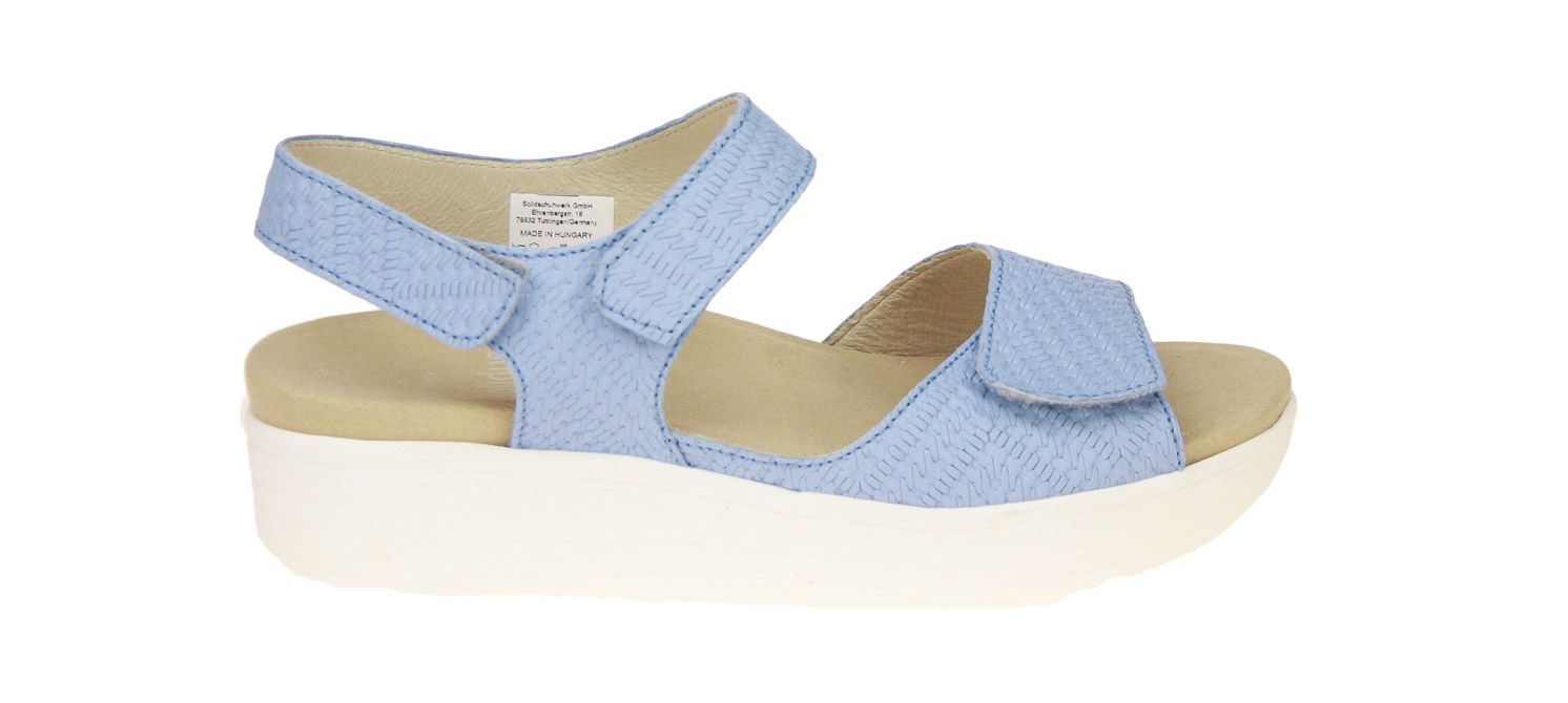 Licht blauw lederen damessandaal van het merk Solidus. De binnenzool is uitneembaar, ideaal voor steunzolen.