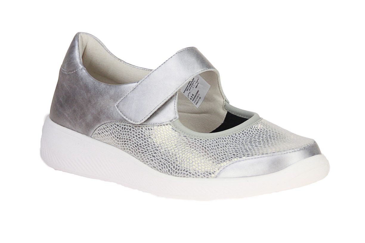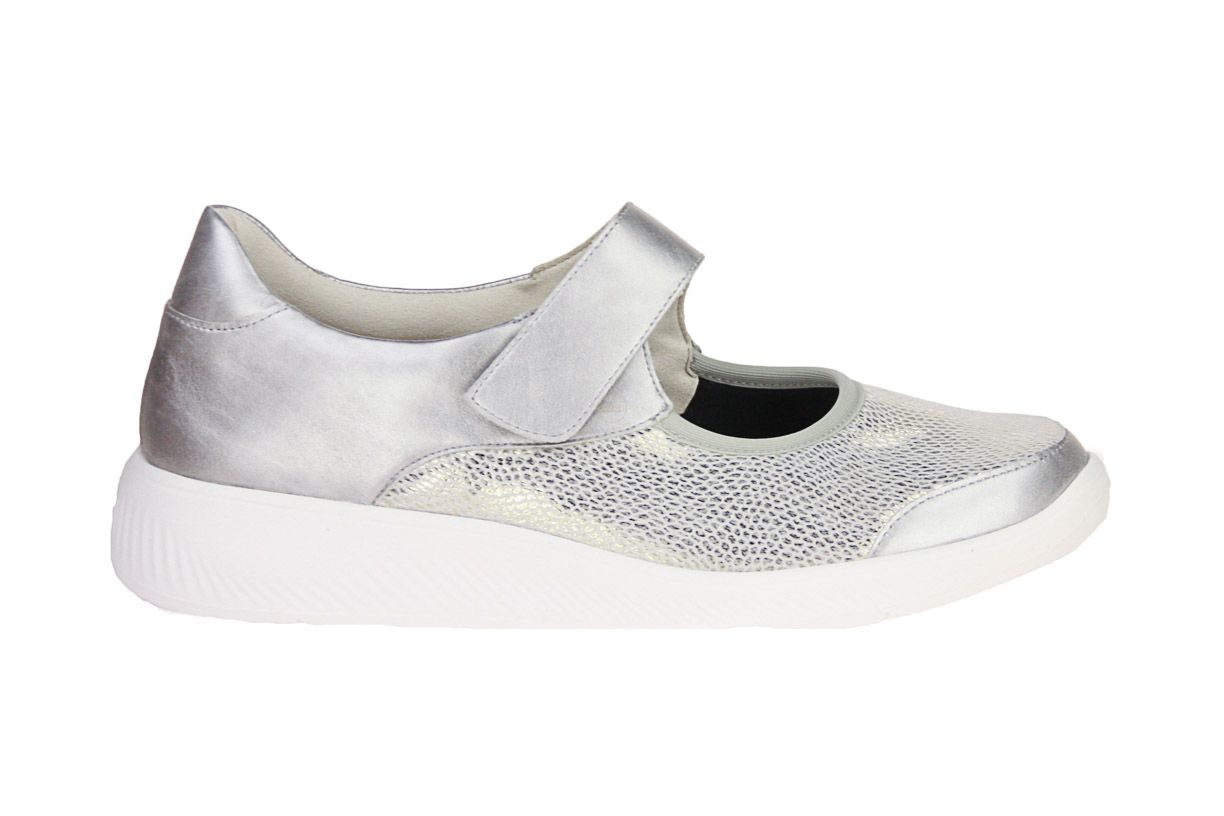 Zilver lederen damesschoen van het merk Solidus. De binnenzool is uitneembaar, ideaal voor steunzolen.