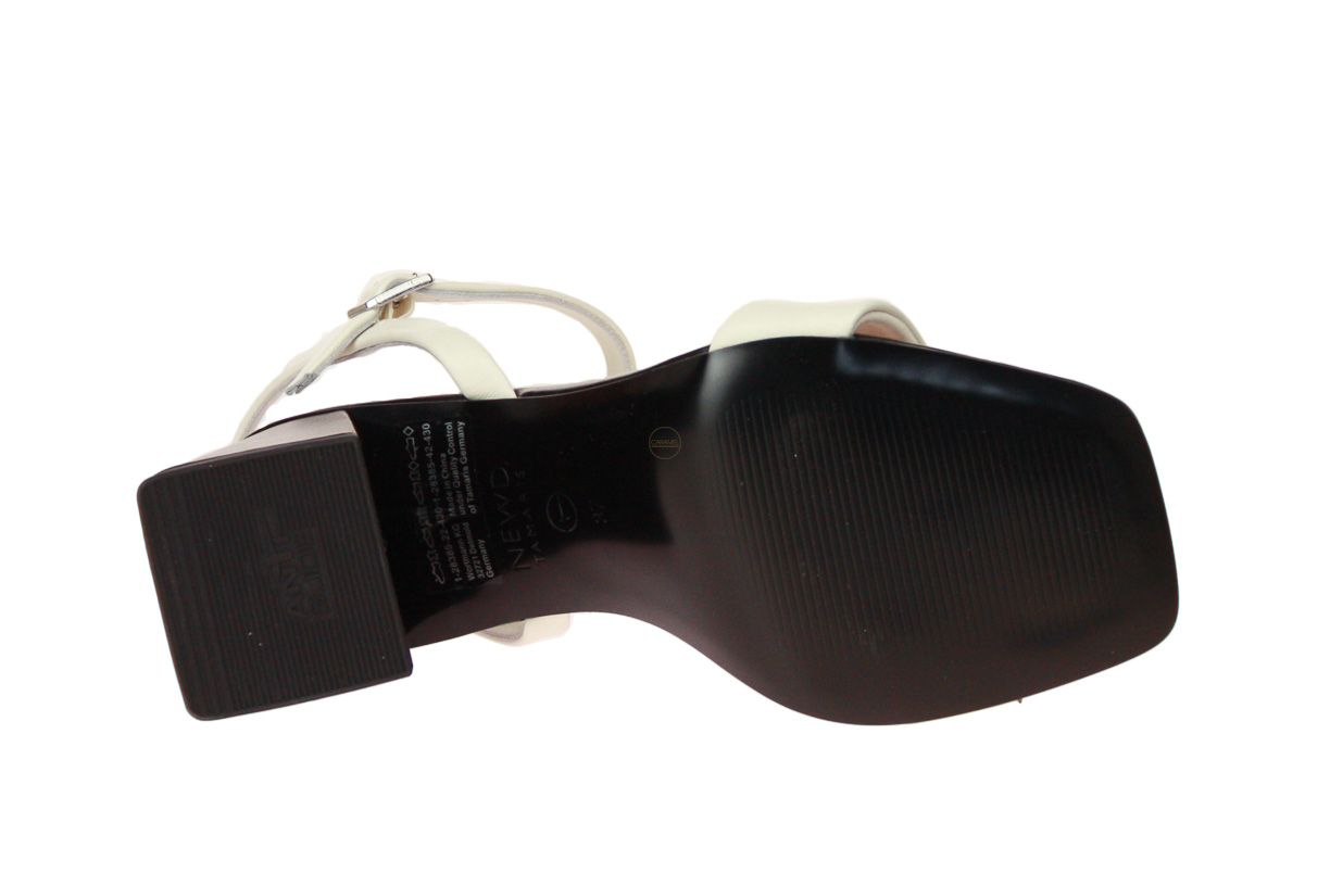 Offwhite lederen damessandaal met zwarte hak en zool van het merk Tamaris.