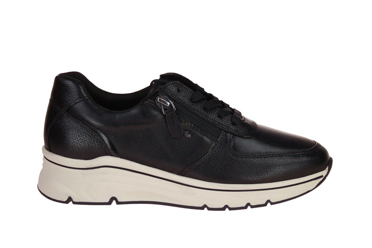 Zwart lederen damesschoen van het merk Tamaris. De binnenzool is uitneembaar, ideaal voor steunzolen.