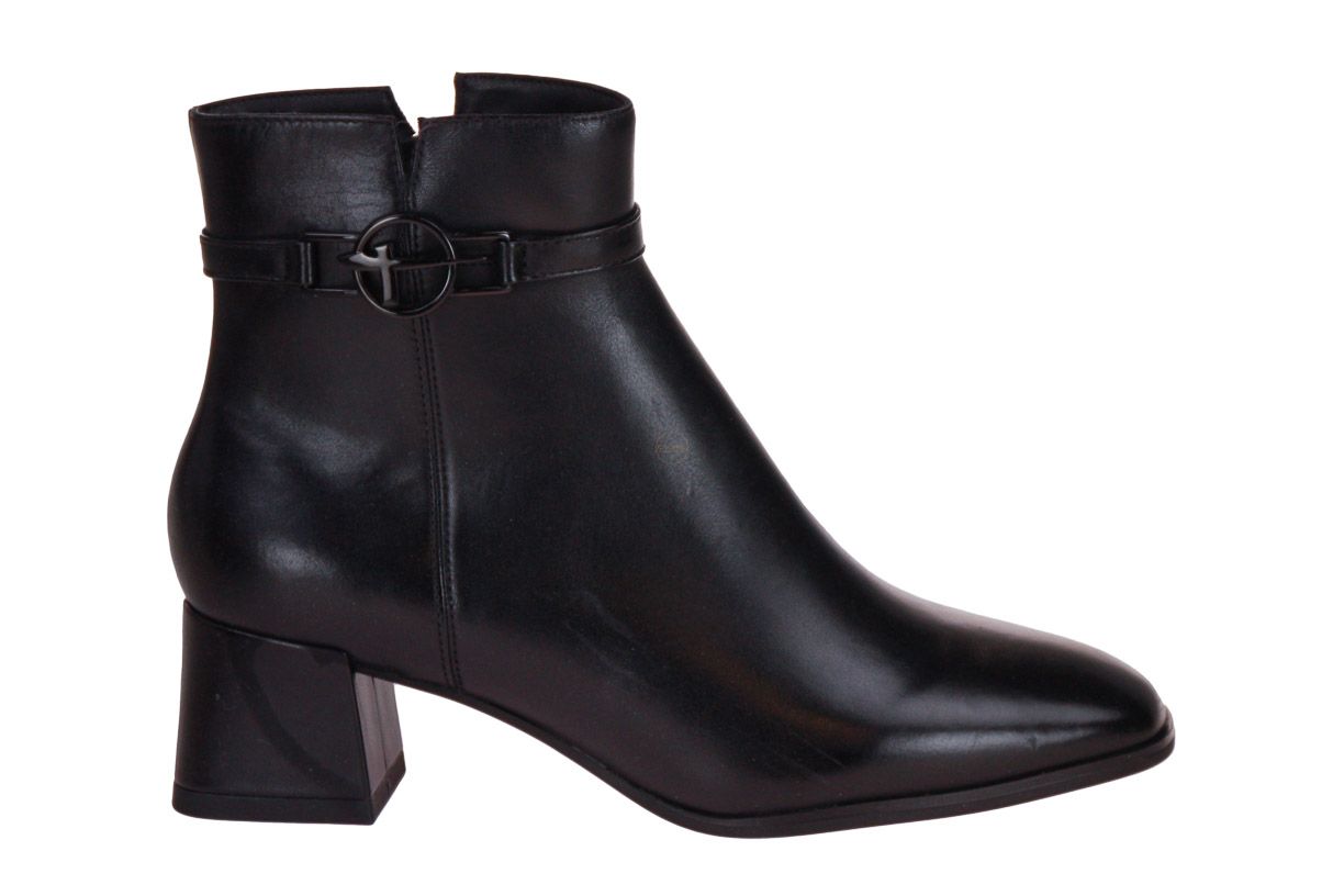 Zwart korte lederen dameslaars van het merk Tamaris.