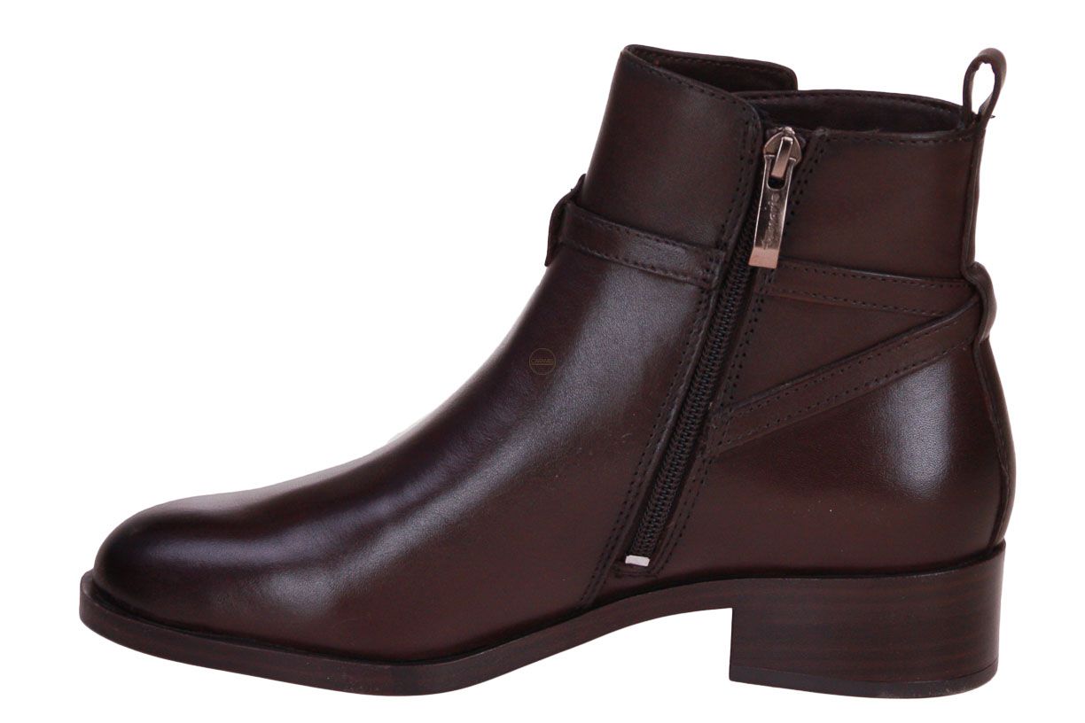 Deze bruin kort lederen dameslaars is van het merk Tamaris.