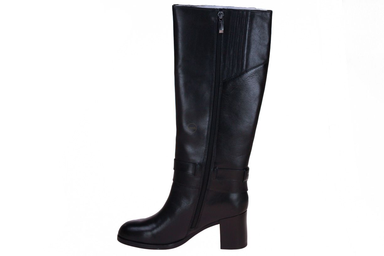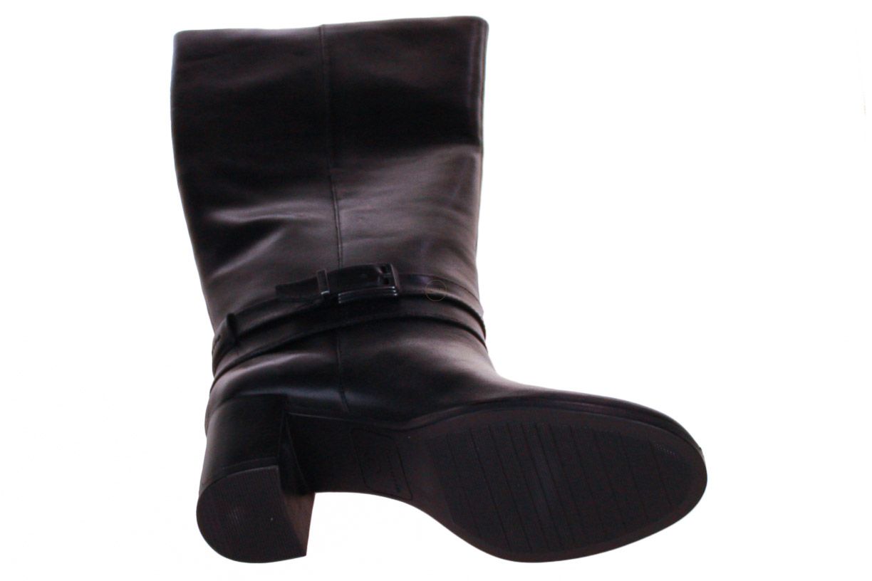 Deze zwart lange lederen dameslaars is van het merk Tamaris.