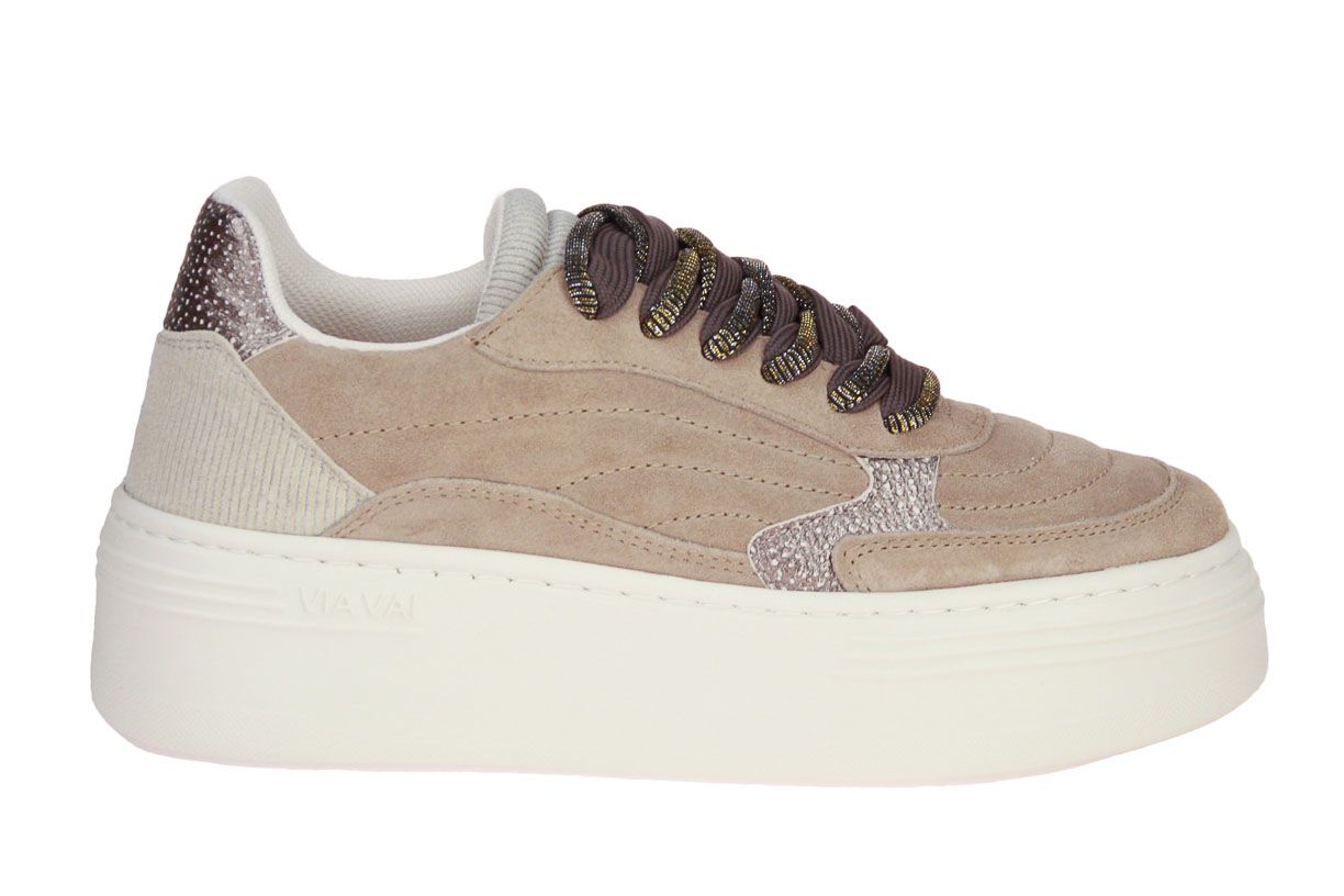Deze beige suède damesschoen is van het merk Via Vai. De binnenzool is uitneembaar, ideaal voor steunzolen.