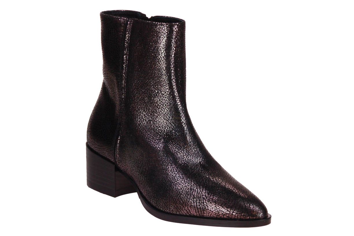 Deze grijs metallic lederen korte dameslaars is van het merk Via Vai.