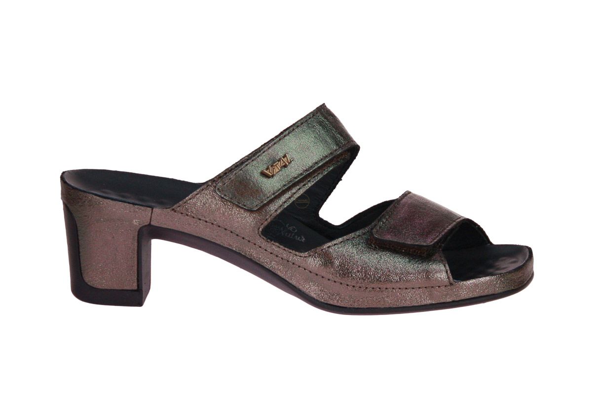 Brons metallic lederen damesslipper van het merk Vital.