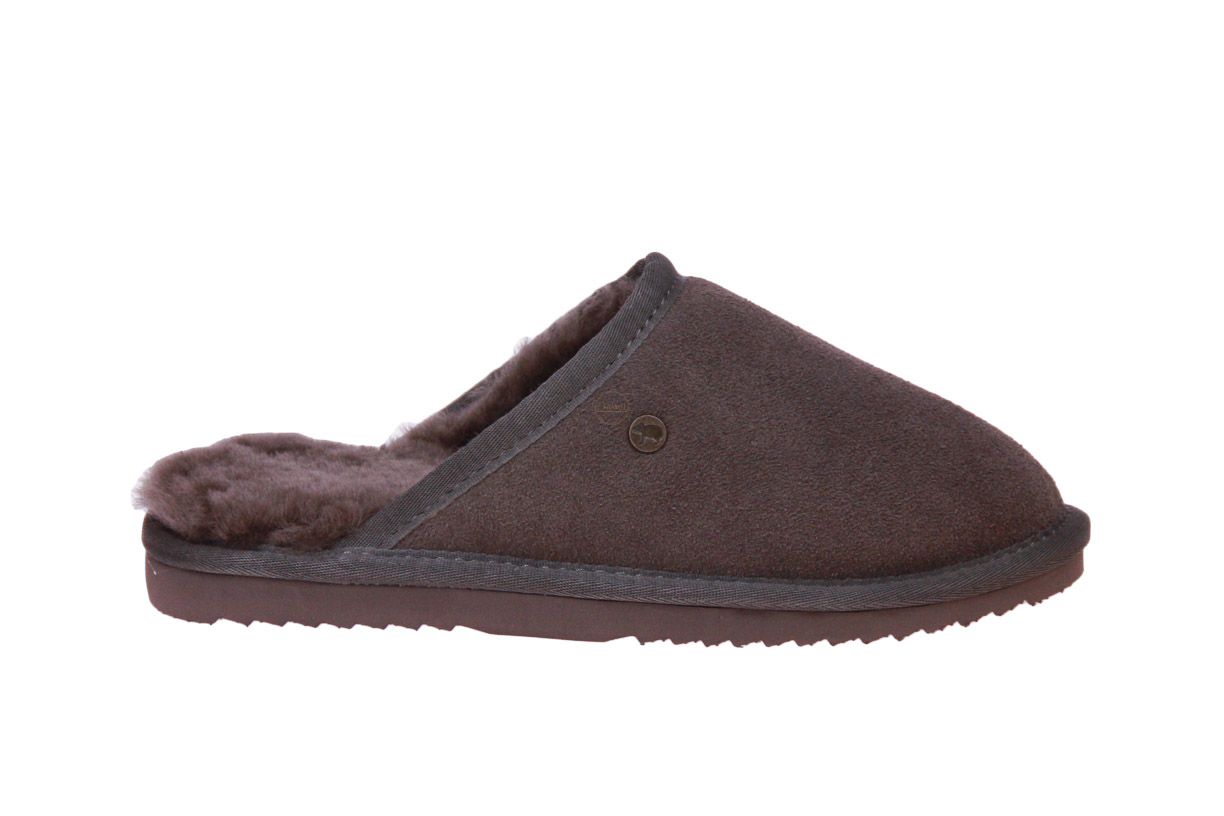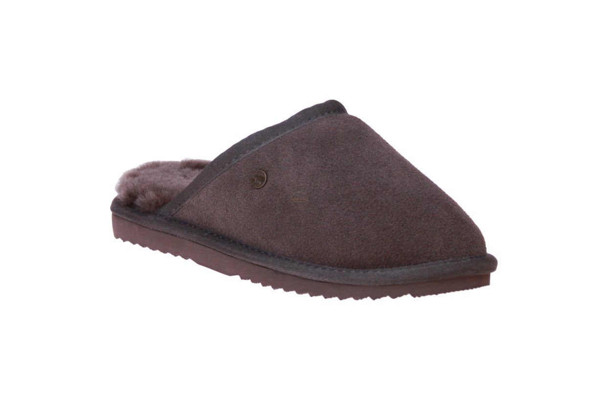 Bruin suède kinderpantoffel van het merk Warmbat.