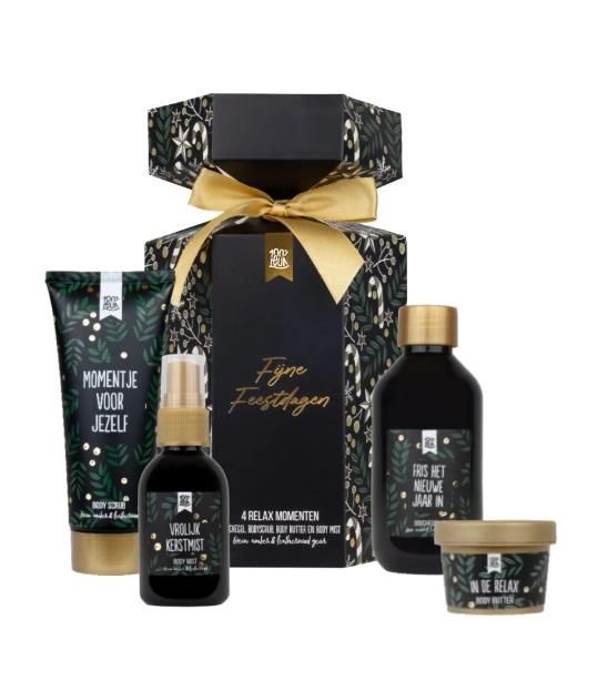 Begin het nieuwe jaar fris met deze stijlvolle cadeauset, bestaande uit vier heerlijke producten. bevat een douchegel in een zwarte fles met gouden dop, met een verfrissende winterse geur en een compact formaat, perfect voor je toilettas, ideaal voor wintersport of elke andere reis. De bodyscrub biedt een heerlijk momentje voor jezelf. De tube is handig en dankzij de subtiele print kun je de scrub het hele jaar door gebruiken. De body mist, lichter dan parfum, is ideaal voor dagelijks gebruik. De speelse boodschap ‘Vrolijk Kerstmist’ en de frisse wintergeur brengen je meteen in wintersportstemming. De set wordt compleet gemaakt door een rijke body butter, die je huid intensief voedt en ontspant. Alle vier de producten delen dezelfde heerlijke geur, wat zorgt voor een heerlijke verzorgingsroutine.