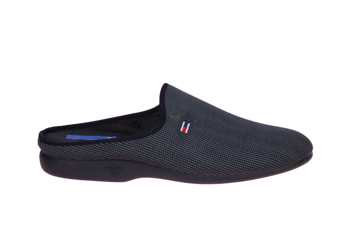 Zwart-grijs textielen herenpantoffel van het merk Alberola.