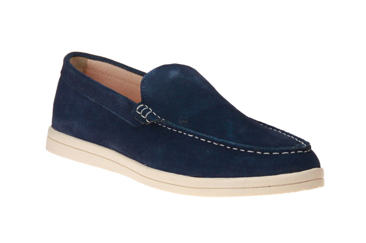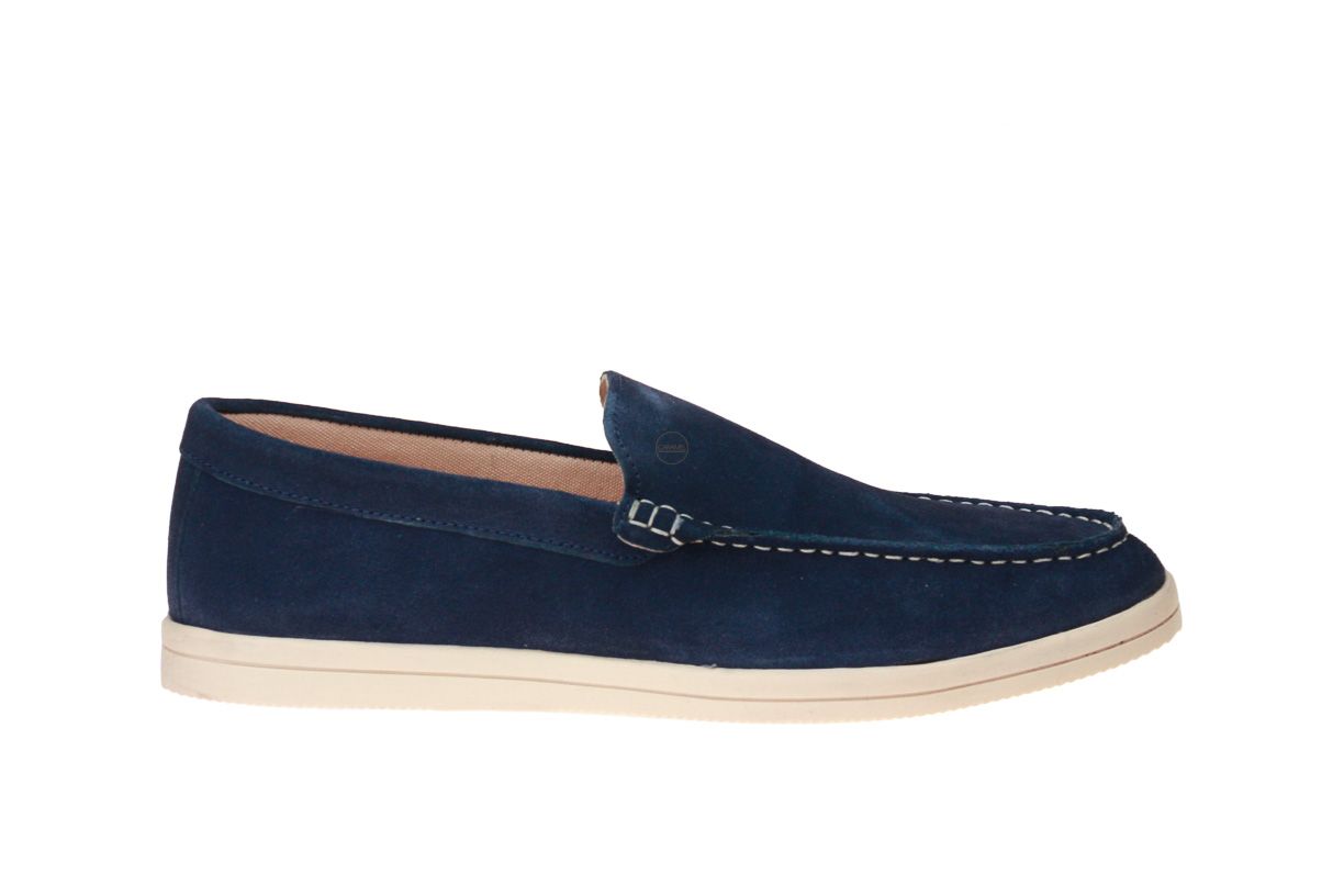 Blauw suède herenschoen van het Franse merk L'Atelier Tropézien.