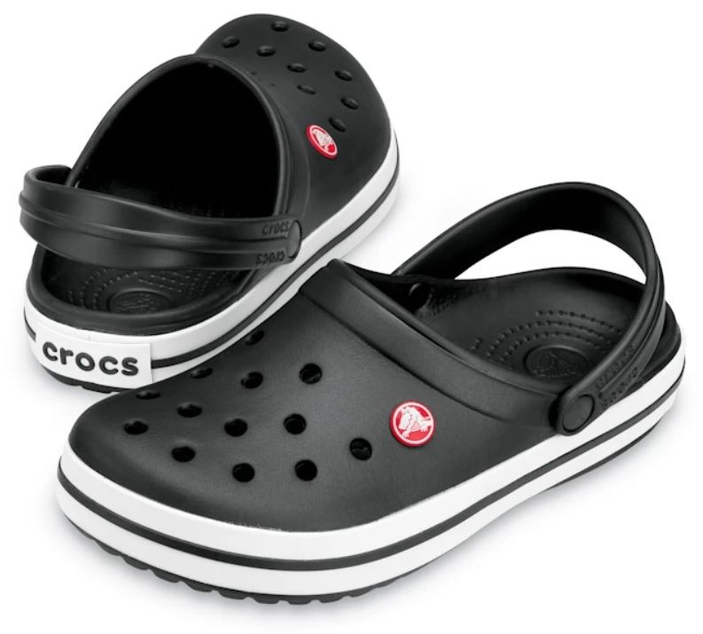 Zwart rubberen slipper van het merk Crocs.