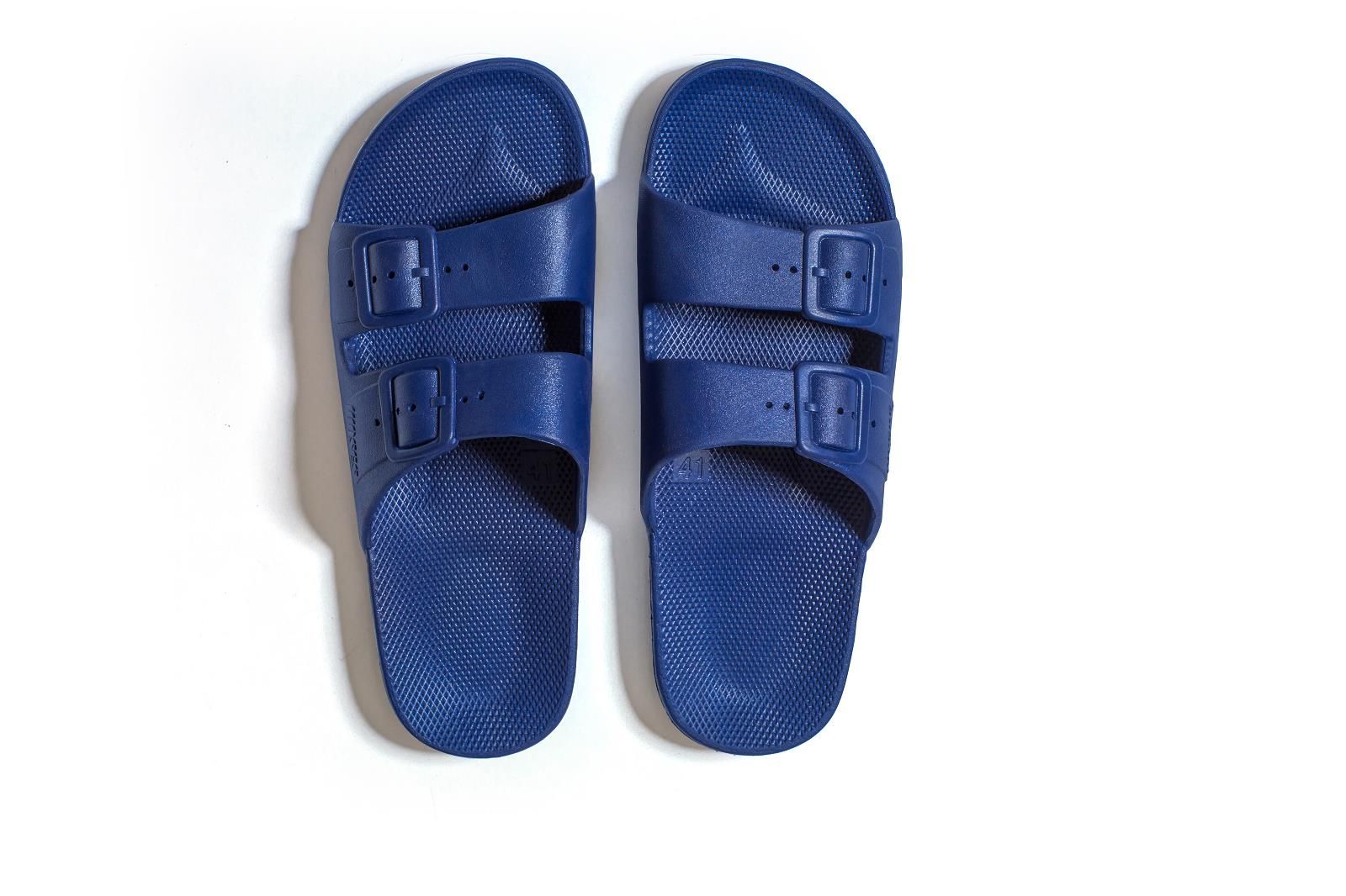 Blauw rubberen slipper van het merk Freedom Moses.