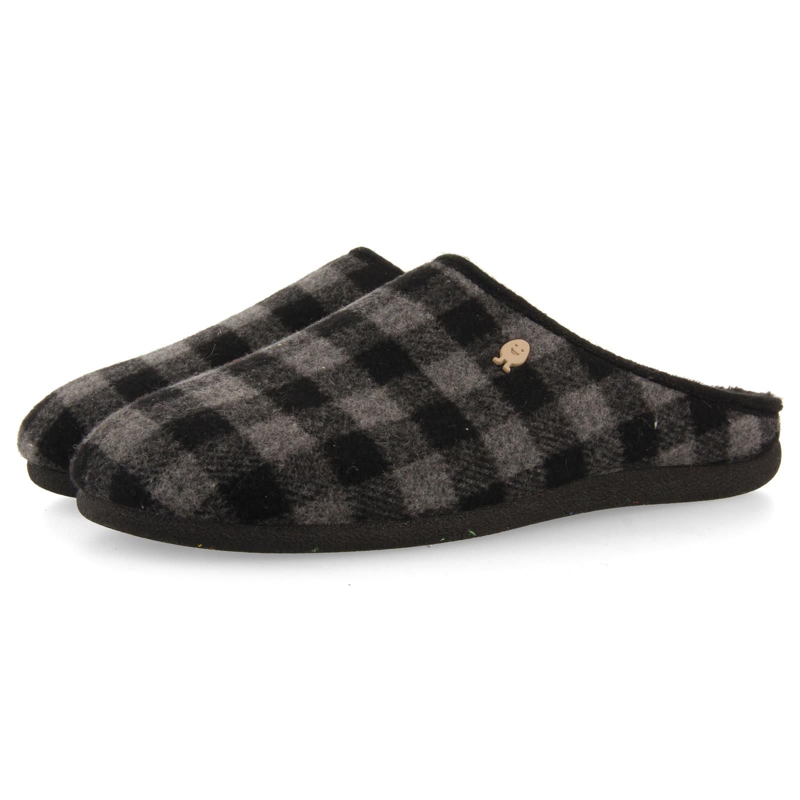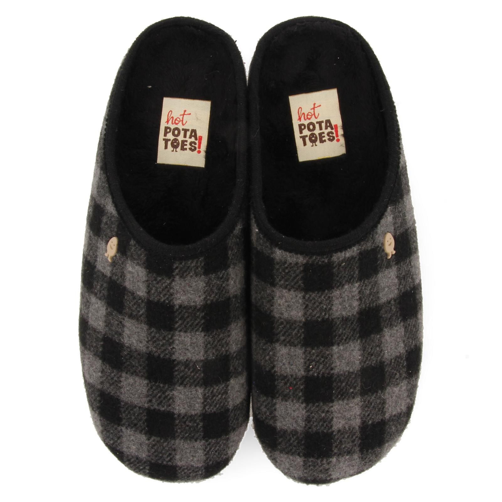 Grijs wollen herenpantoffel van het merk Hot Potatoes. De binnenzool is uitneembaar, ideaal voor steunzolen.