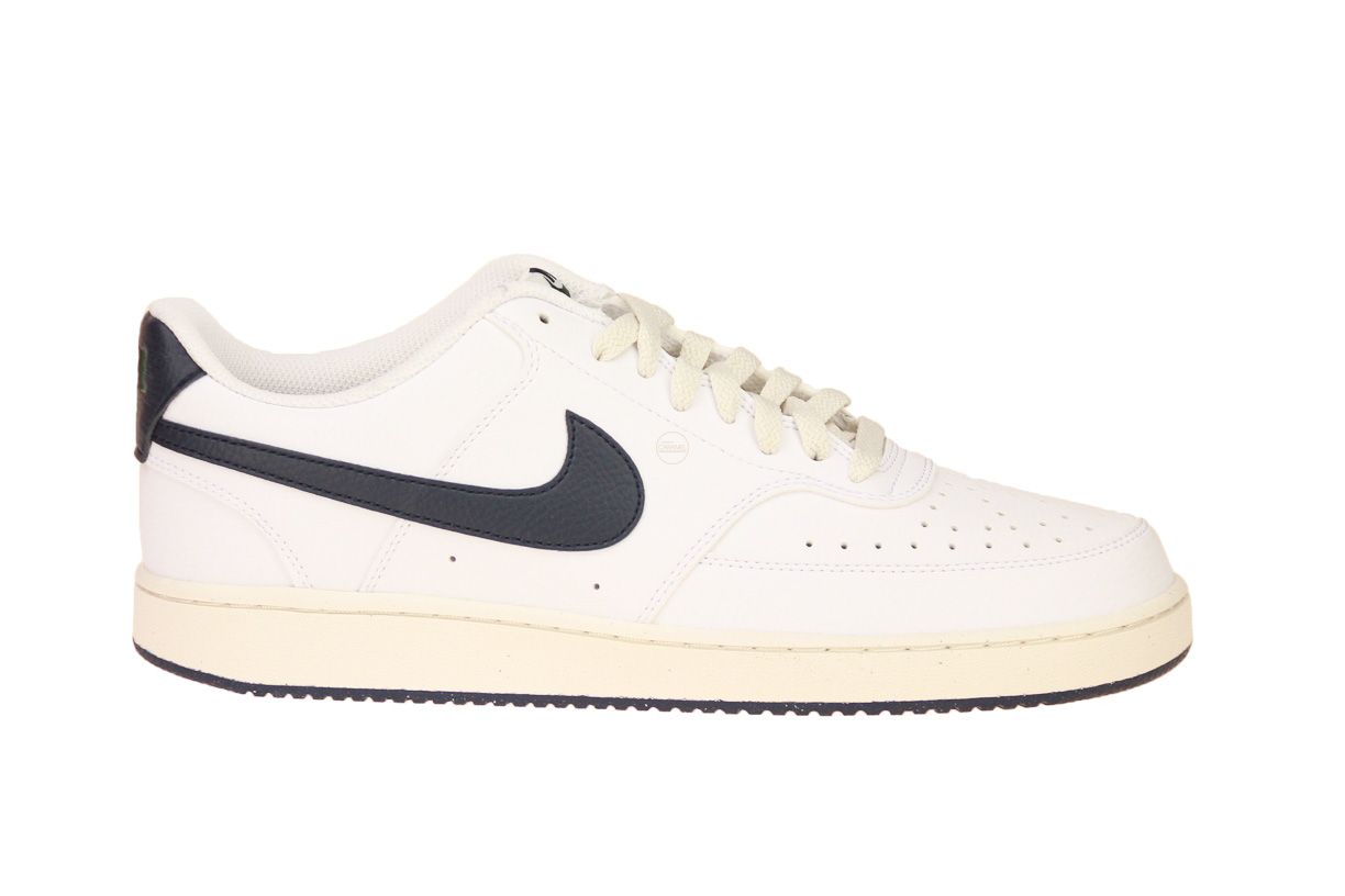 Wit synthetisch lederen sneaker met blauwe accenten van het merk Nike.