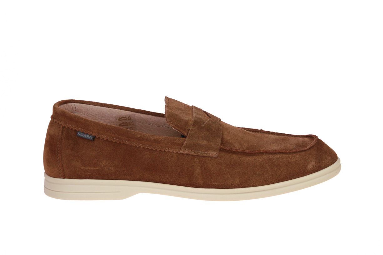 Cognac suède herenschoen van het merk Scapa. De binnenzool is uitneembaar, ideaal voor steunzolen.