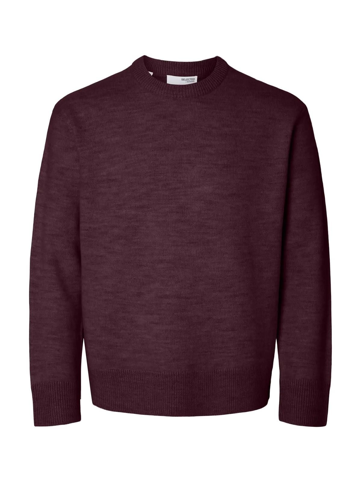 Selected Homme Harne LS Knit Relaxed Wool Crew Neck Winetasting  (16098356 WINETASTING) - MerkenOutlet